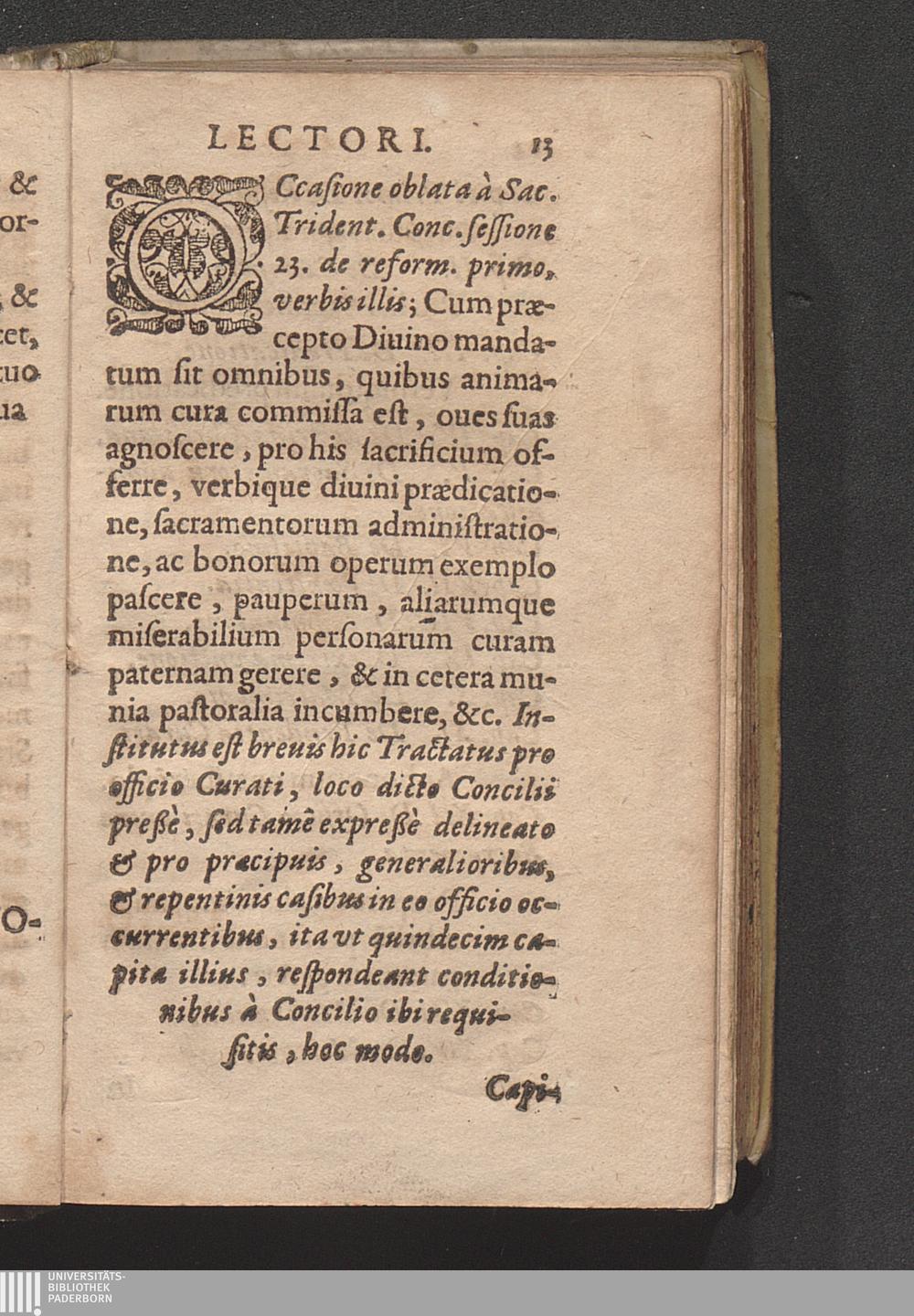 De Officio Cvrati Ad Praxim, Præcipve Circa Repentina, & Generaliora / Liber Ioan. Baptistæ Bernardini Possevini Mantuani Archipresbyteri Collegiatæ, & Parochialis Ecclesiæ Castri Noui Portuensis Diœcesis