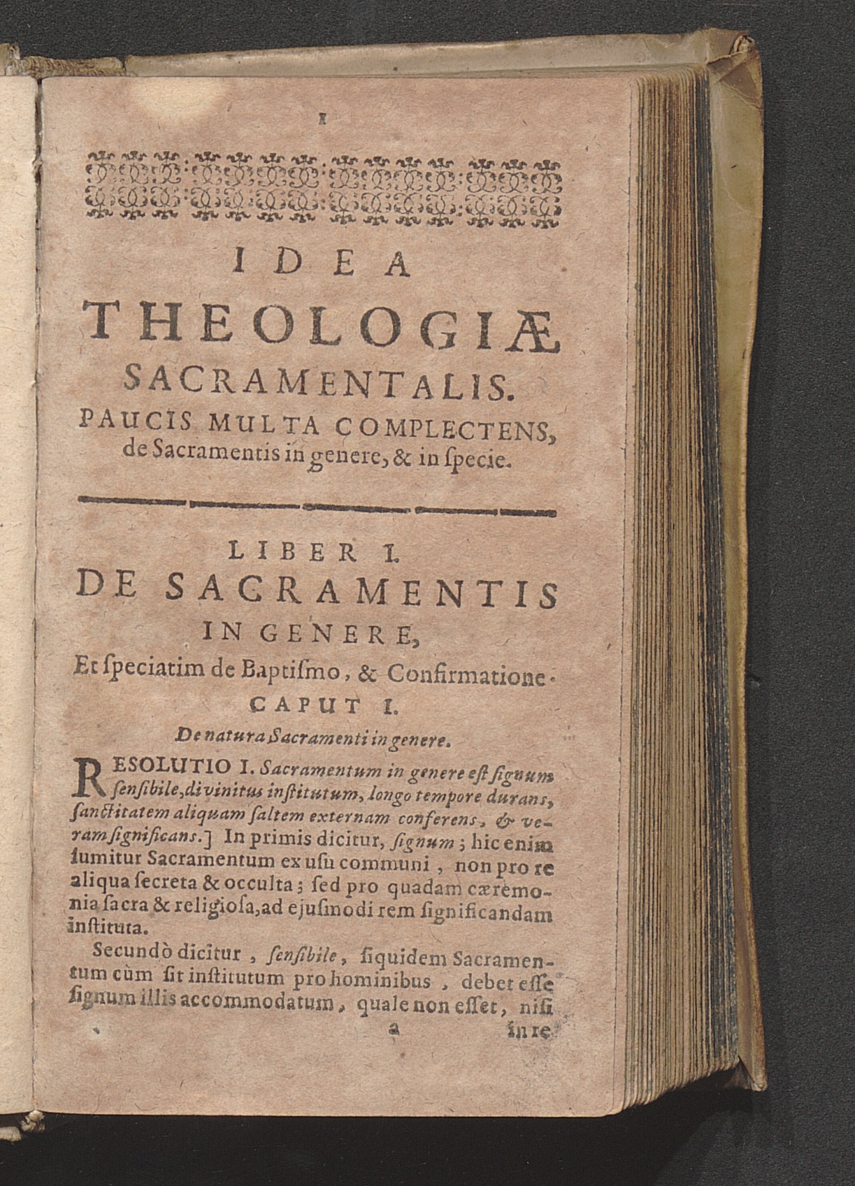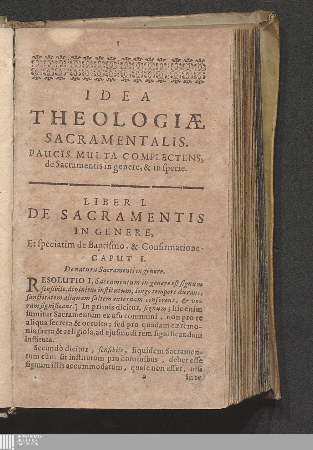 Liber I. D Sacramentis in genere, ac speciatim de Baptismo & Confirmatione.