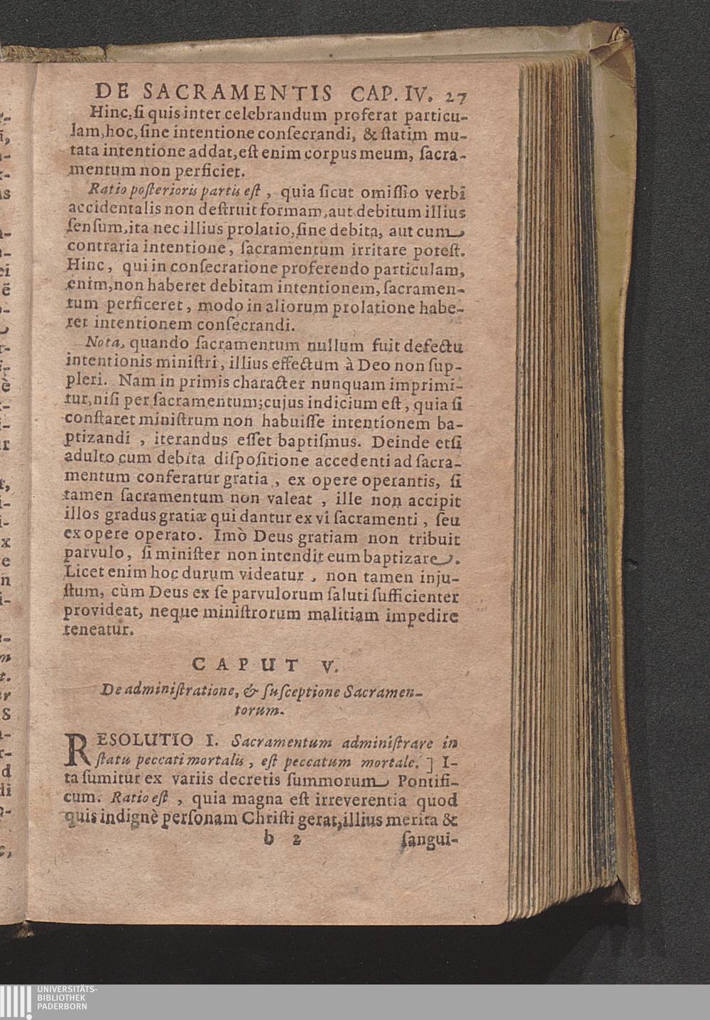 V. De administratione, & susceptione Sacramentorum.