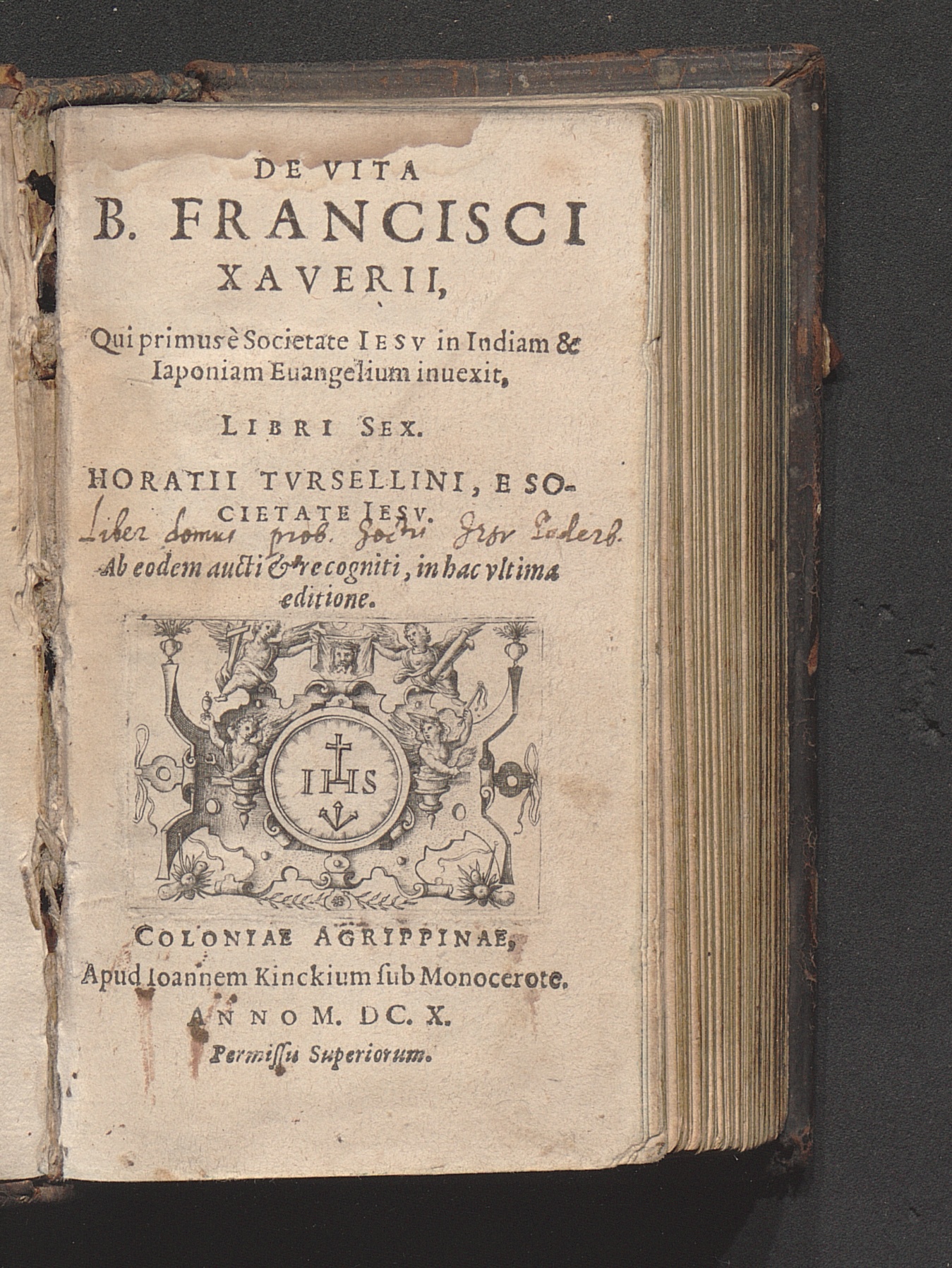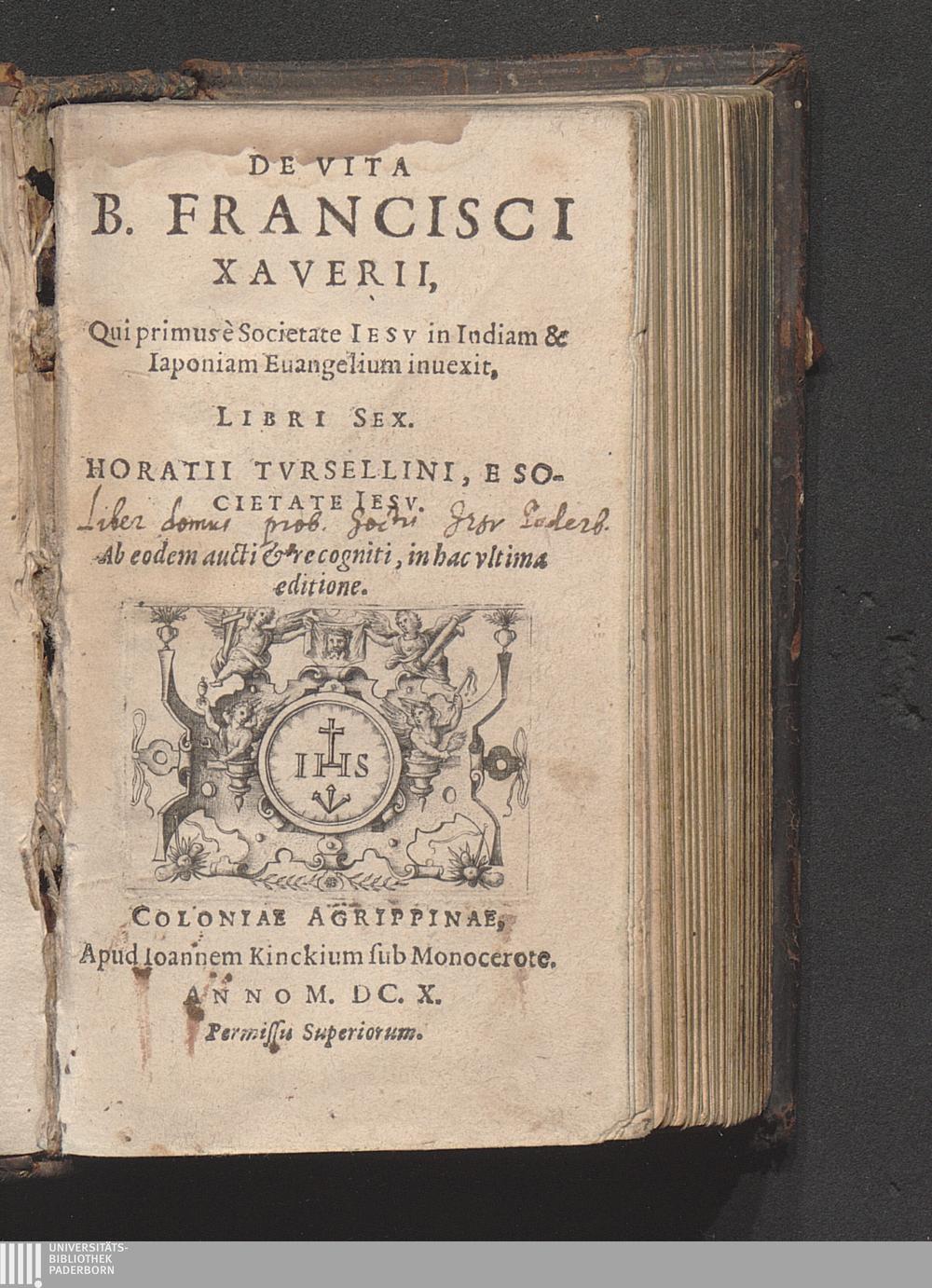 De Vita B. Francisci Xaverii : Qui primus è Societate Iesv in Indiam & Iaponiam Euangelium inuexit, Libri Sex. Horatii Tvrsellini, E Societate Iesv