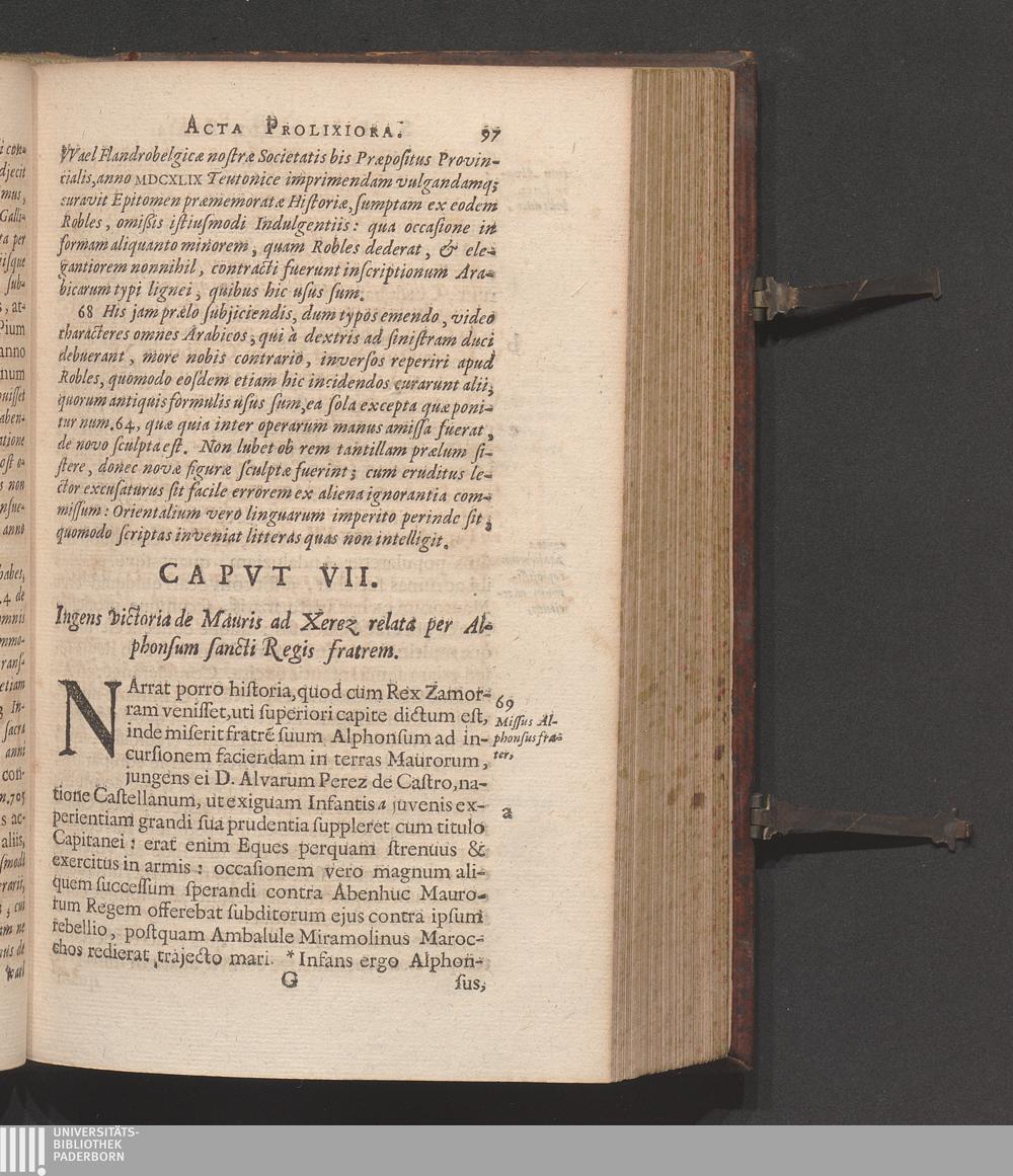 Acta Vitæ S. Ferdinandi, Regis Castellæ Et Legionis, Ejus Nominis Tertii : Cum Postuma Illius Gloria, Et Historia S. Crucis Caravacanæ, Eodem quo ipse natus est anno MCXCVIII cælitus allatæ / ex Latinis ac Hispanicis Coævorum scriptis collecta, varieque illustrata, Commentariis, Annotationibus, & Iconibus, Opera Ac Studio R. P. Danielis Papebrochii, è Societate Jesv Sacerdotis Theologi, Sicut in majori ipsius opere de Actis Sanctorum Maji, mox in lucem dando, legentur