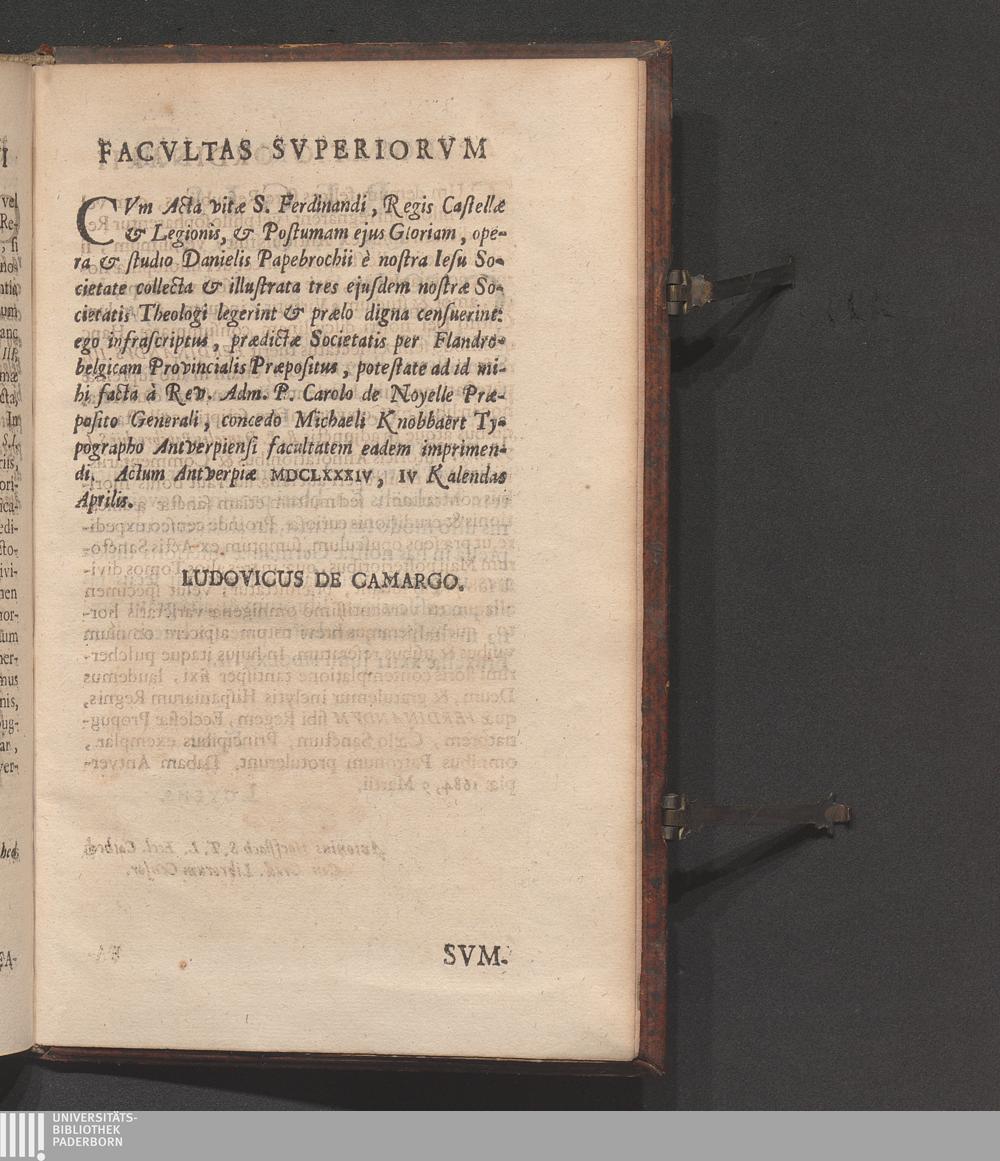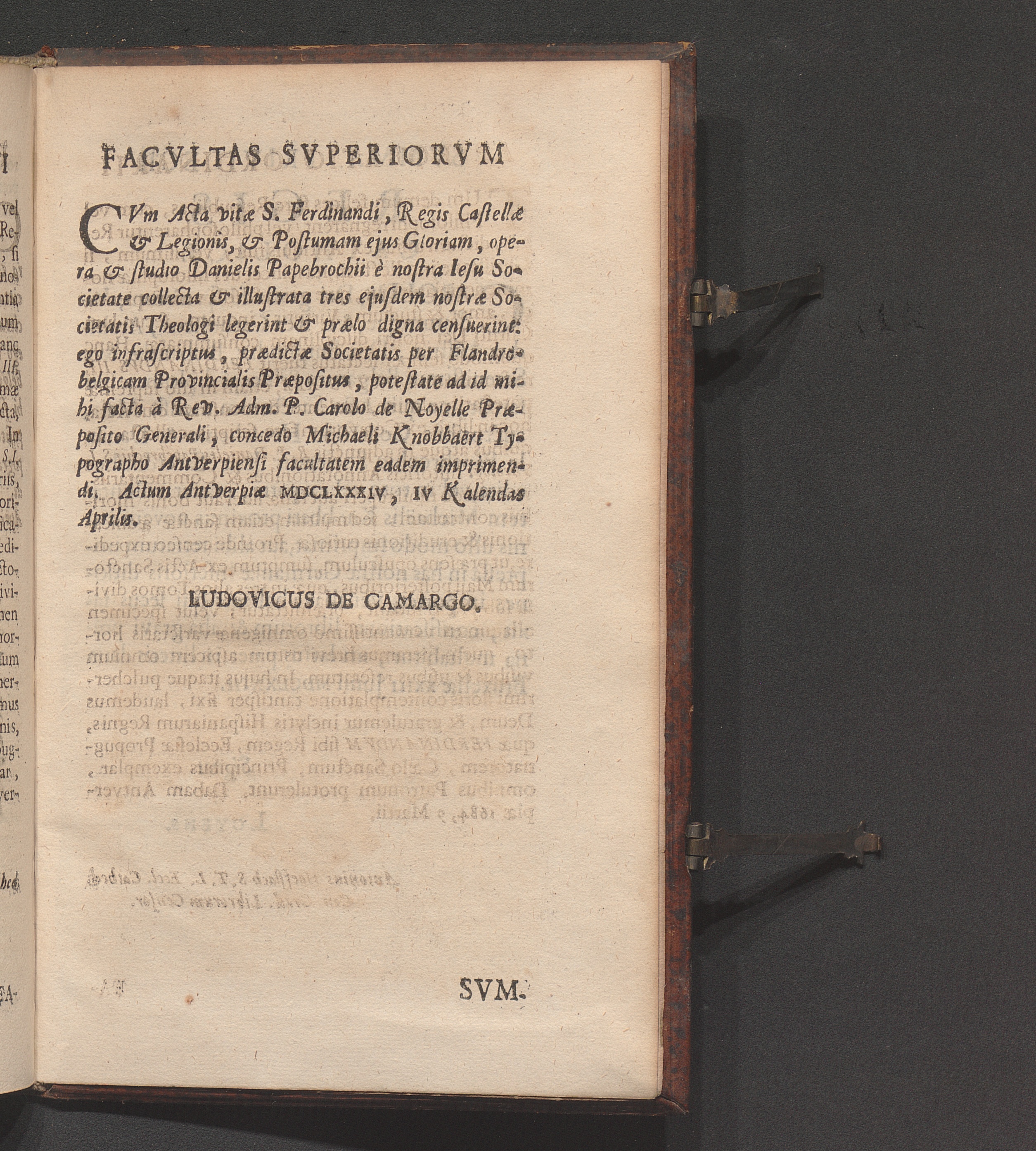 Acta Vitæ S. Ferdinandi, Regis Castellæ Et Legionis, Ejus Nominis Tertii : Cum Postuma Illius Gloria, Et Historia S. Crucis Caravacanæ, Eodem quo ipse natus est anno MCXCVIII cælitus allatæ / ex Latinis ac Hispanicis Coævorum scriptis collecta, varieque illustrata, Commentariis, Annotationibus, & Iconibus, Opera Ac Studio R. P. Danielis Papebrochii, è Societate Jesv Sacerdotis Theologi, Sicut in majori ipsius opere de Actis Sanctorum Maji, mox in lucem dando, legentur