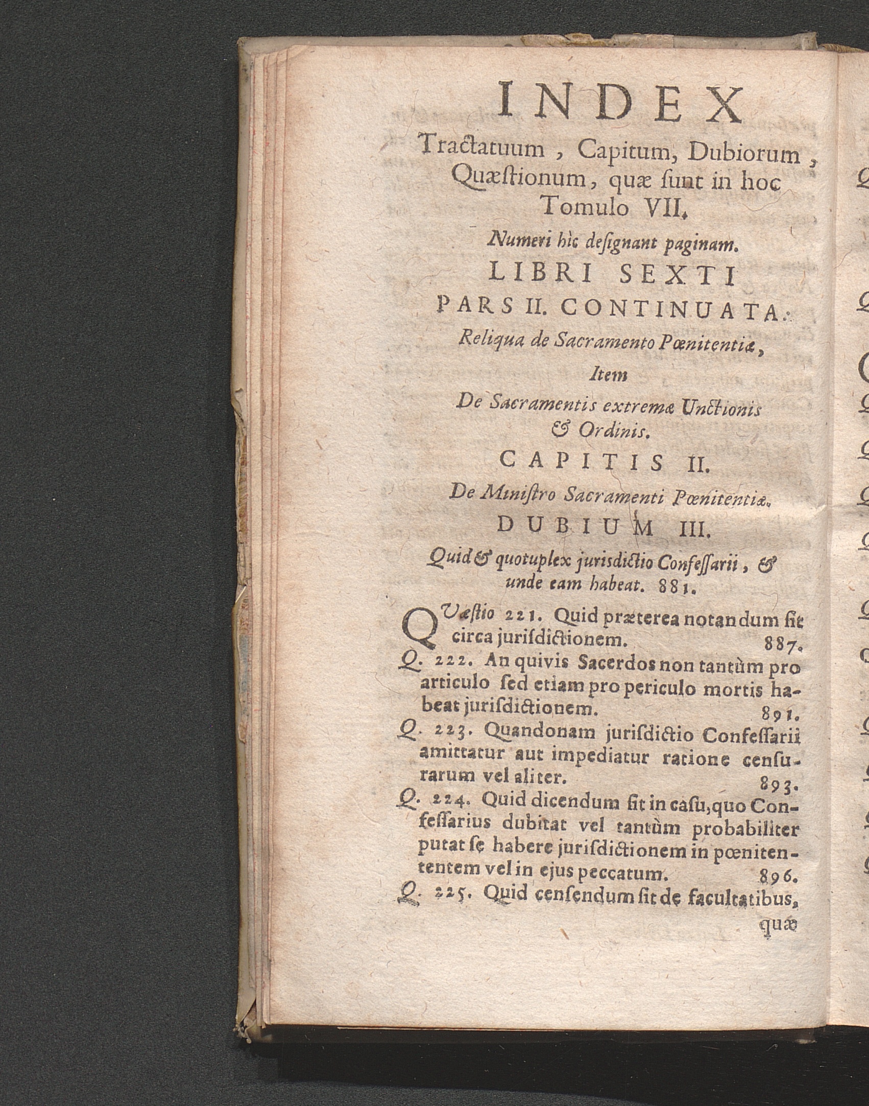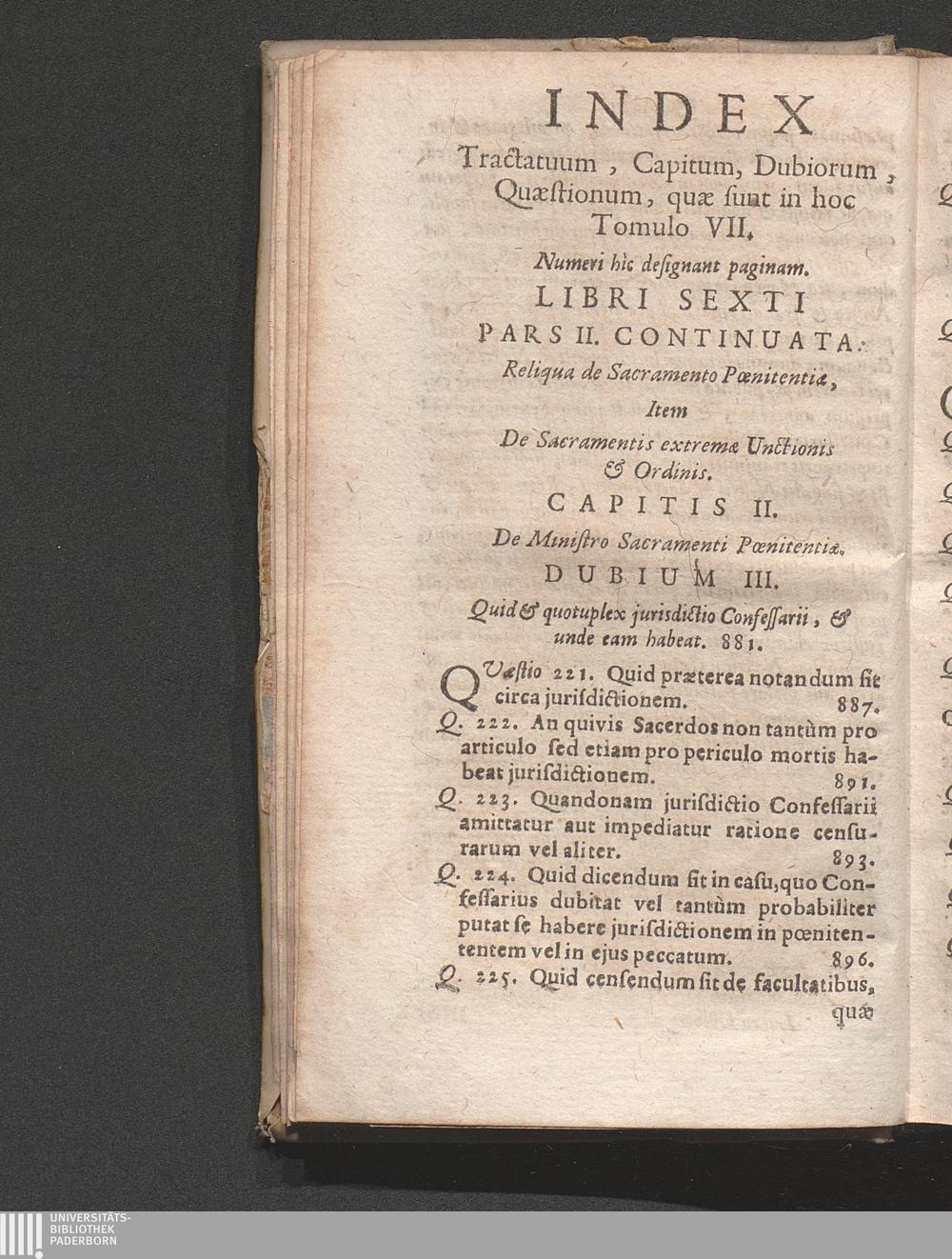 Index Tractatuum, Capitum, Dubiorum, Quæstionum, quæ sunt in hoc Tomulo VII.