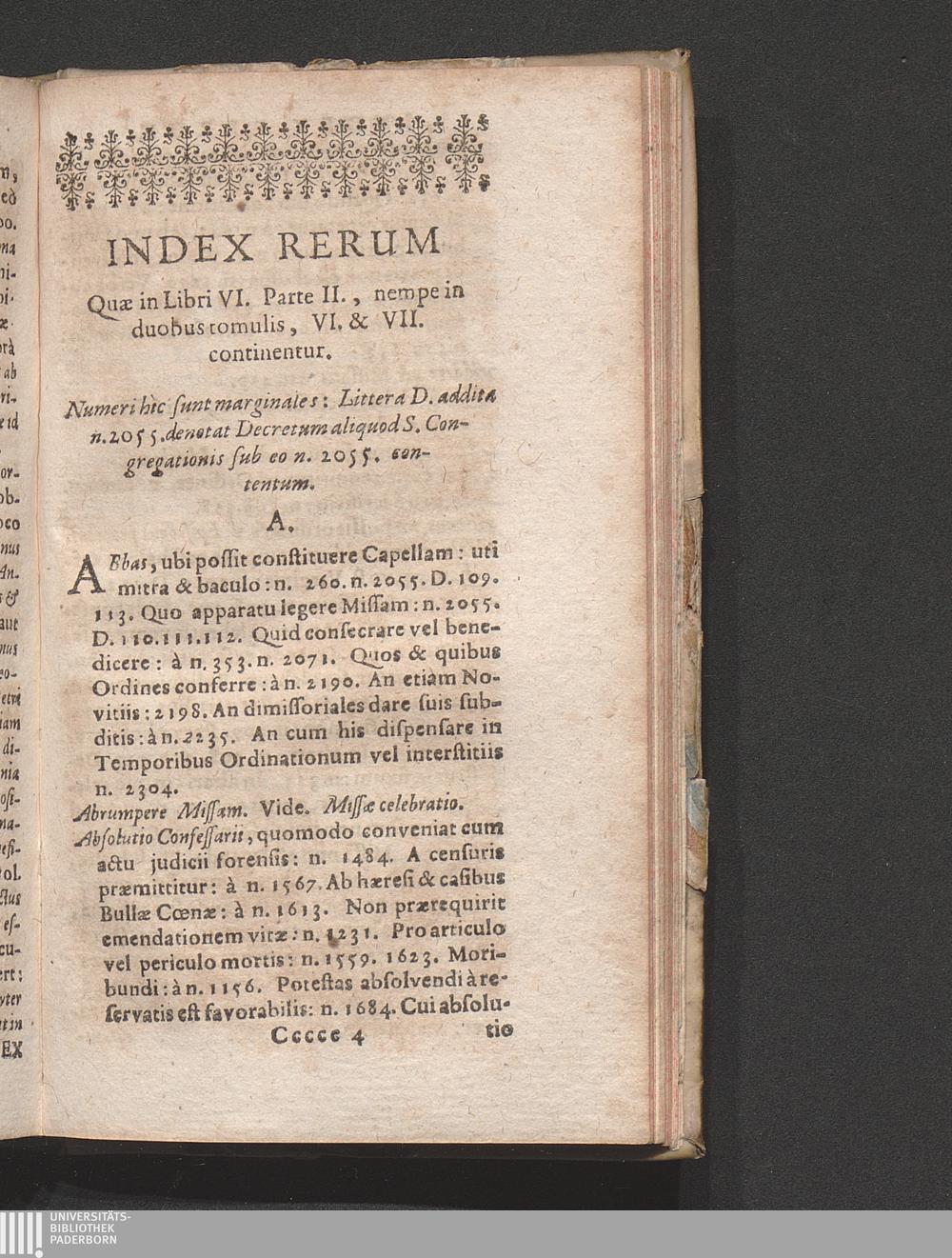 Index Rerum Quæ in Libri VI. Parte II., nempe in duobus tomulis, Vi. & VII. cont[...]