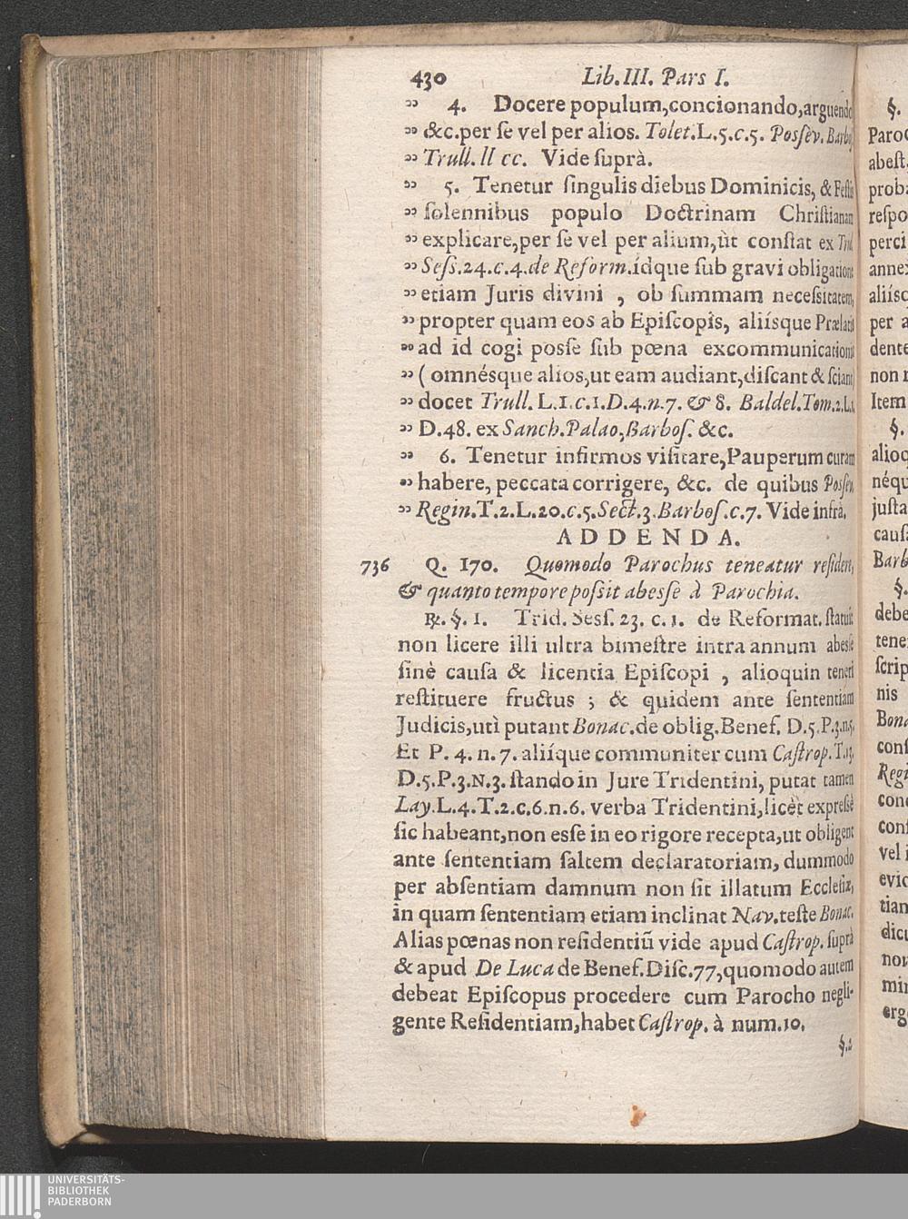 Q. 170. Quomodo parochus teneatur residere.
