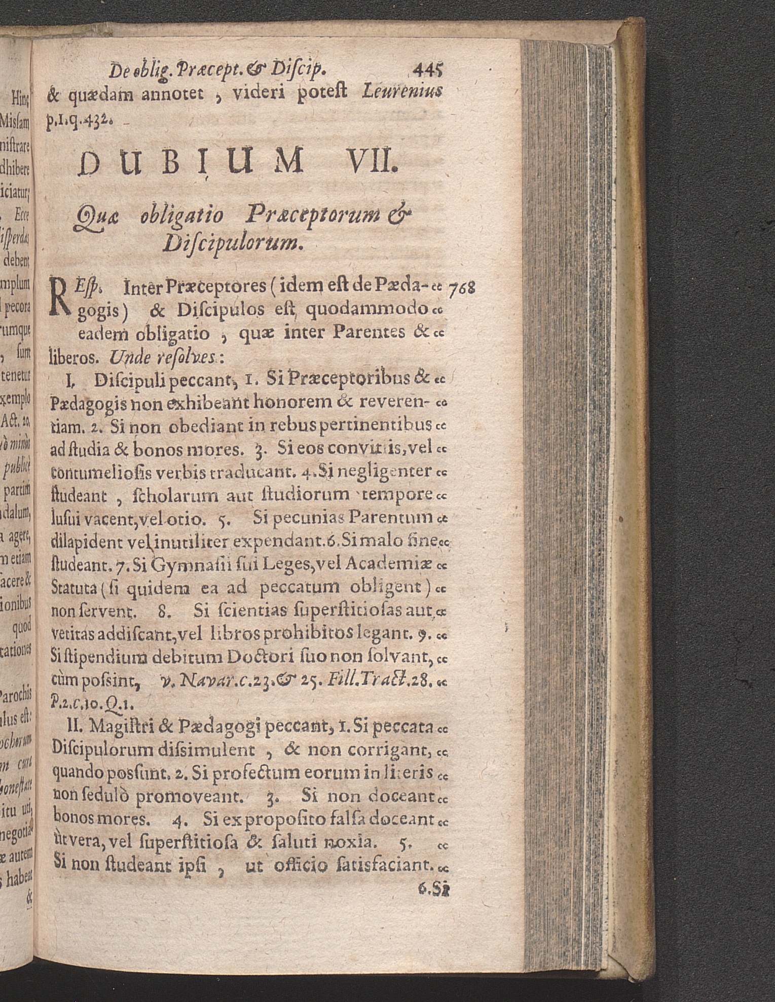 Dubium VII. Quæ obligatio Præceptorum & Discipulorum.