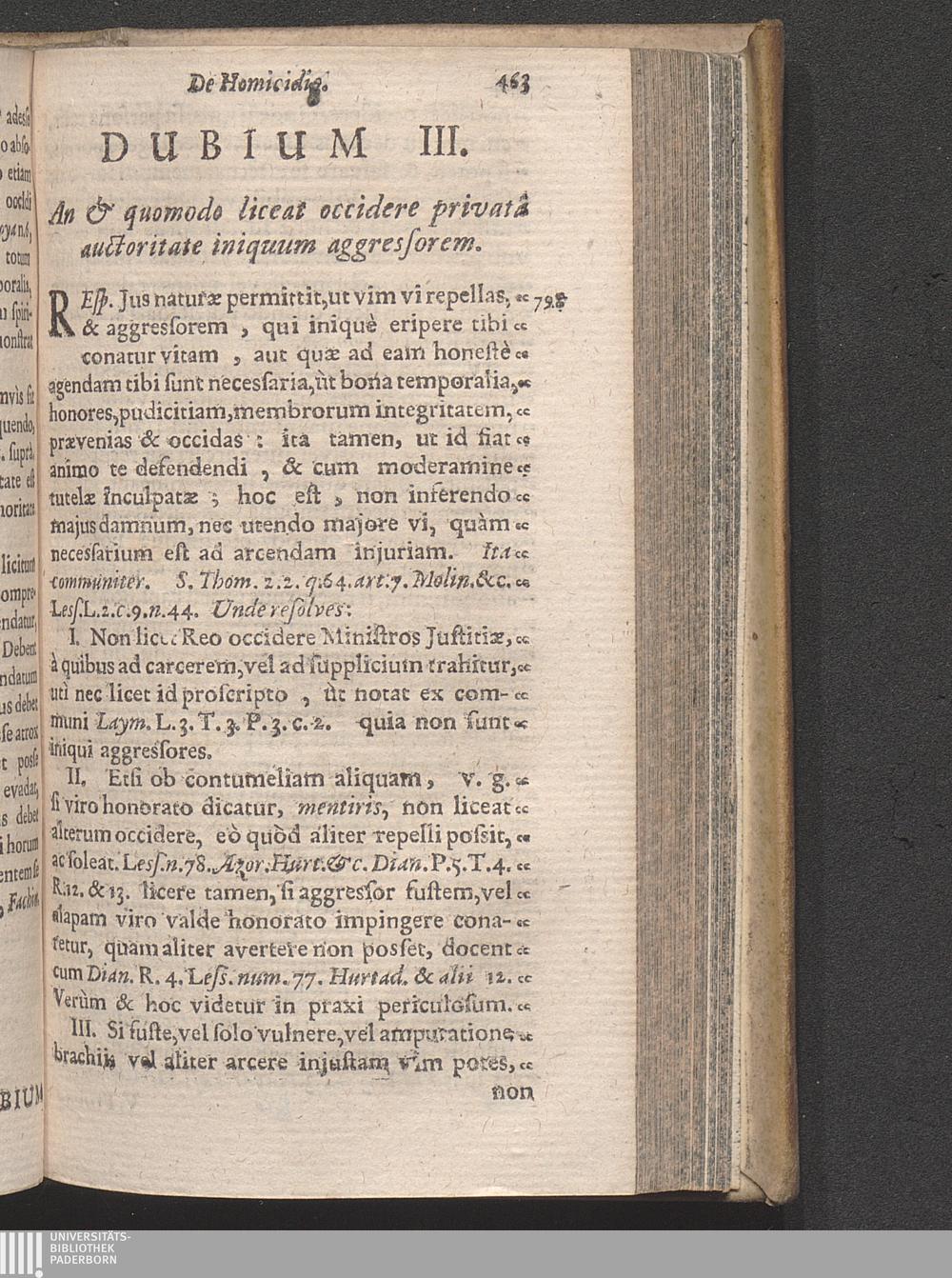 Dubium III. An liceat occidere iniquum aggressorem.
