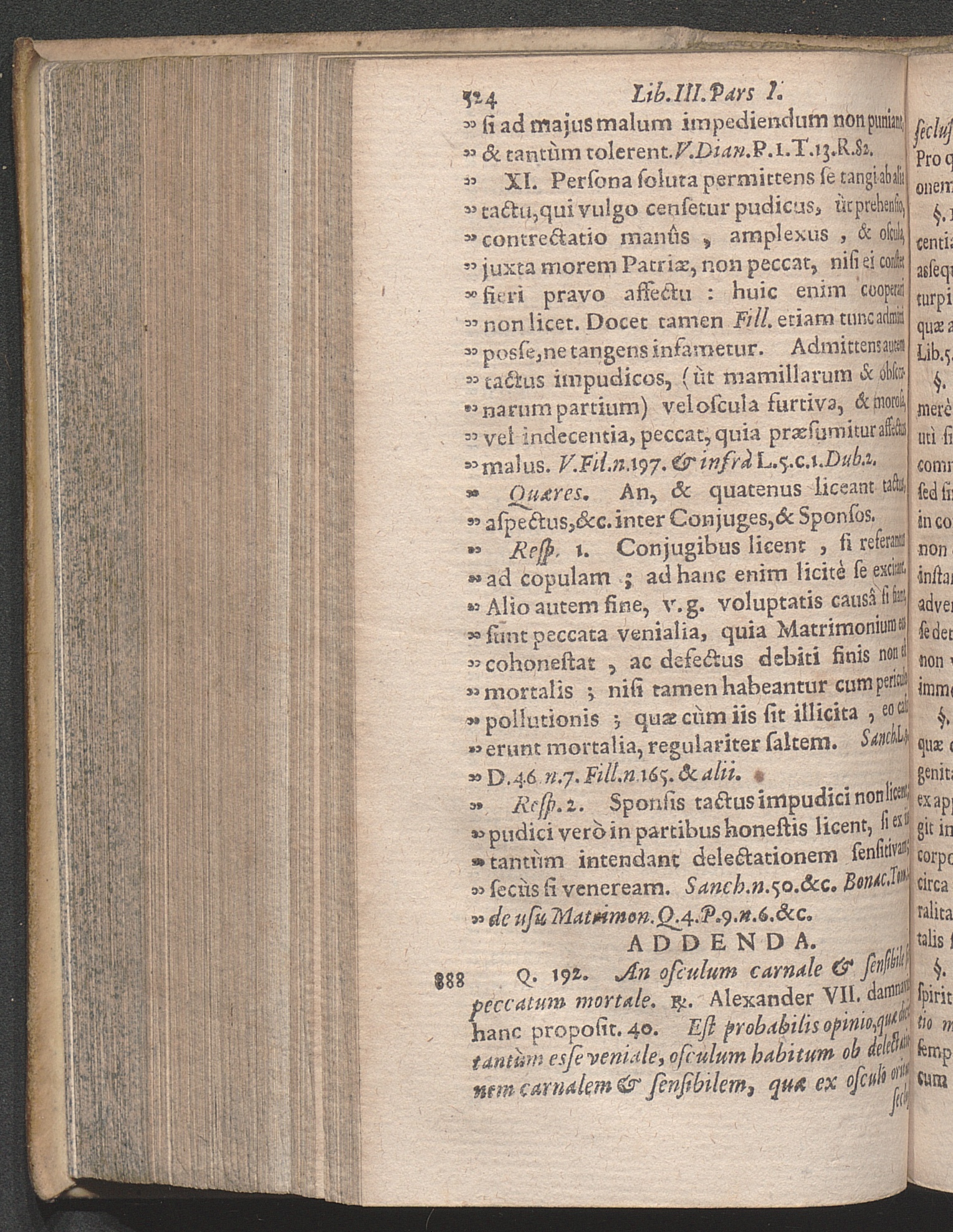 Q. 192. An osculum carnale & sensibile sit peccatum mortale.