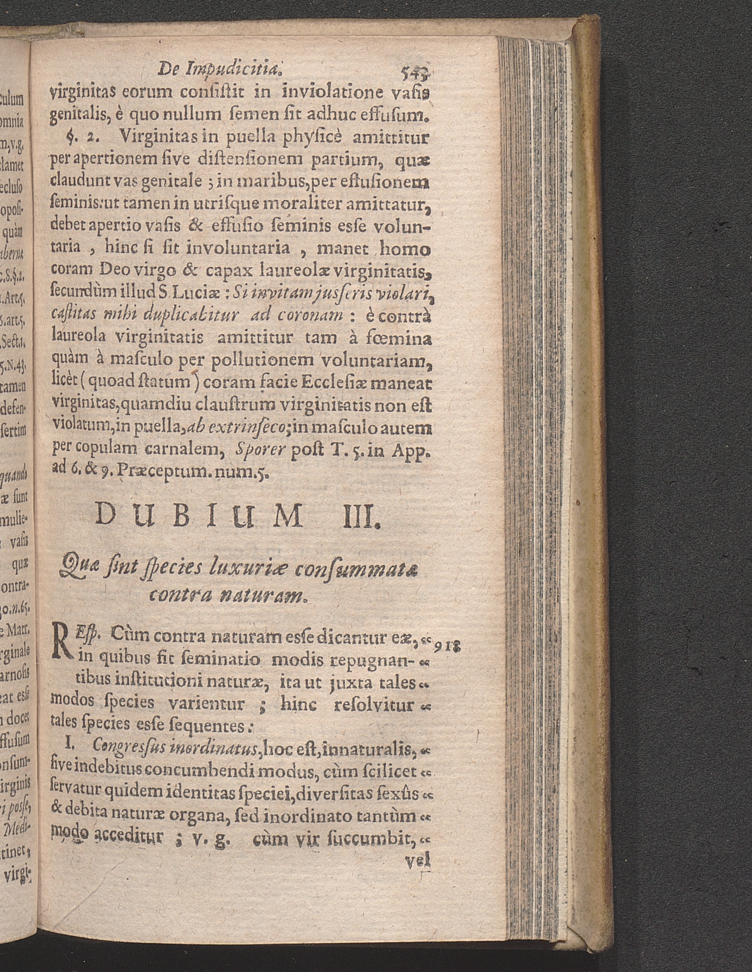 Dubium III. Quæ sint species luxuriæ consummatæ contra naturam.