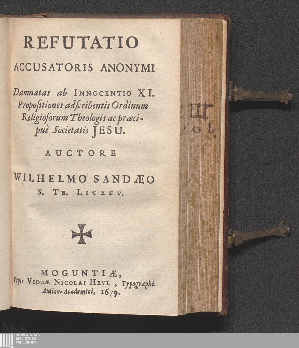Refutatio Accusatoris Anonymi Damnatas ab Innocentio XI. Propositiones adscribentis Ordinum Religiosorum Theologis ac præcipuè Societatis Jesu / Auctore Wilhelmo S. Th. Licent.