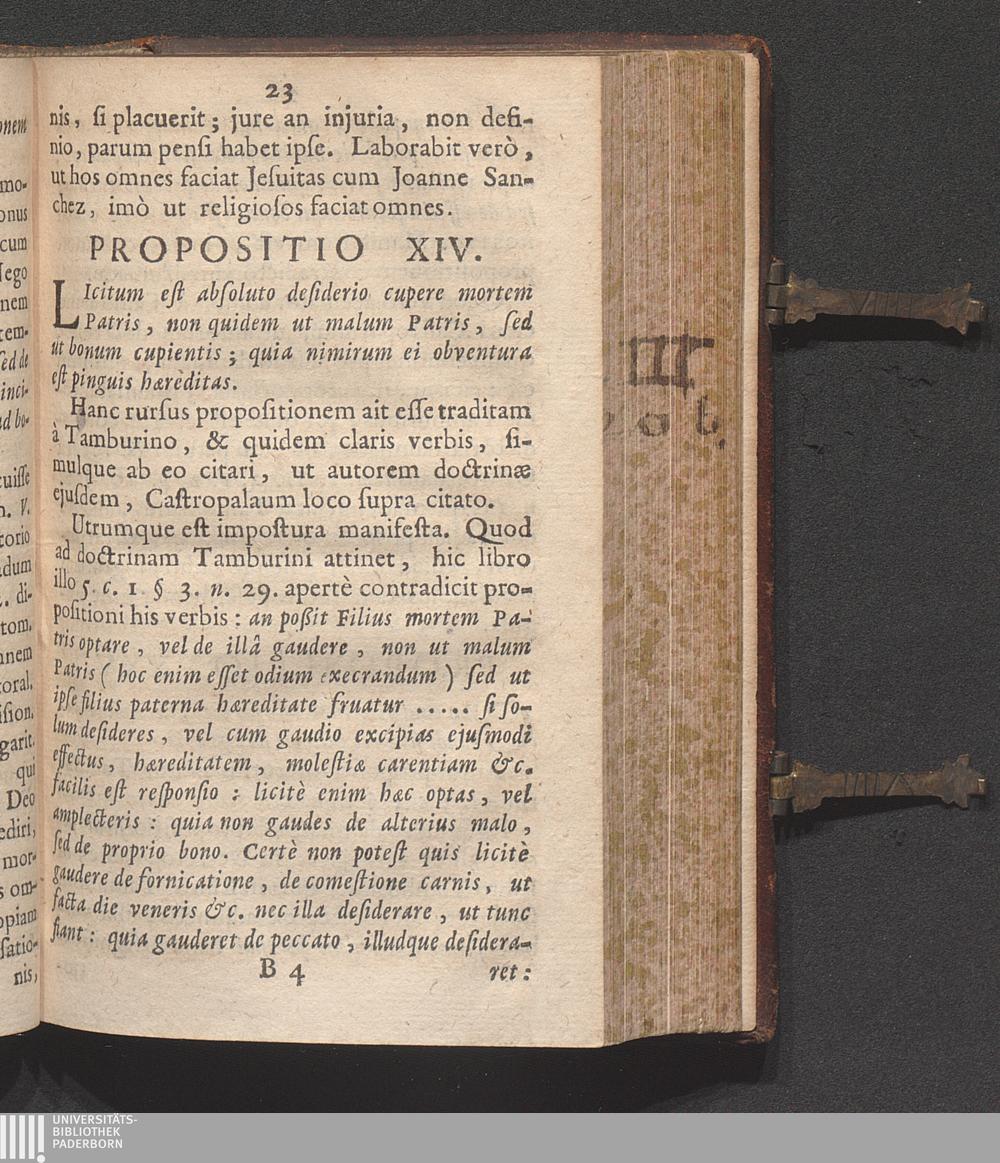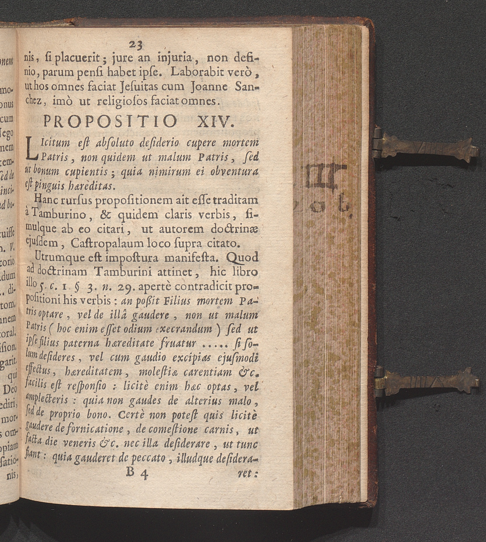Propositio XIV. Licitum est absoluto desiderio cupere mortem patris, non quidem ut[...]