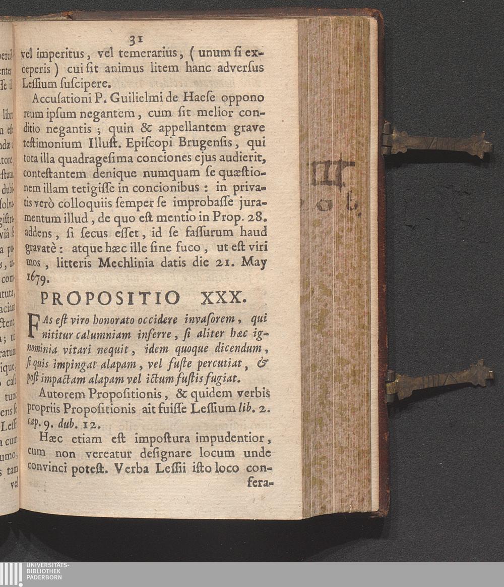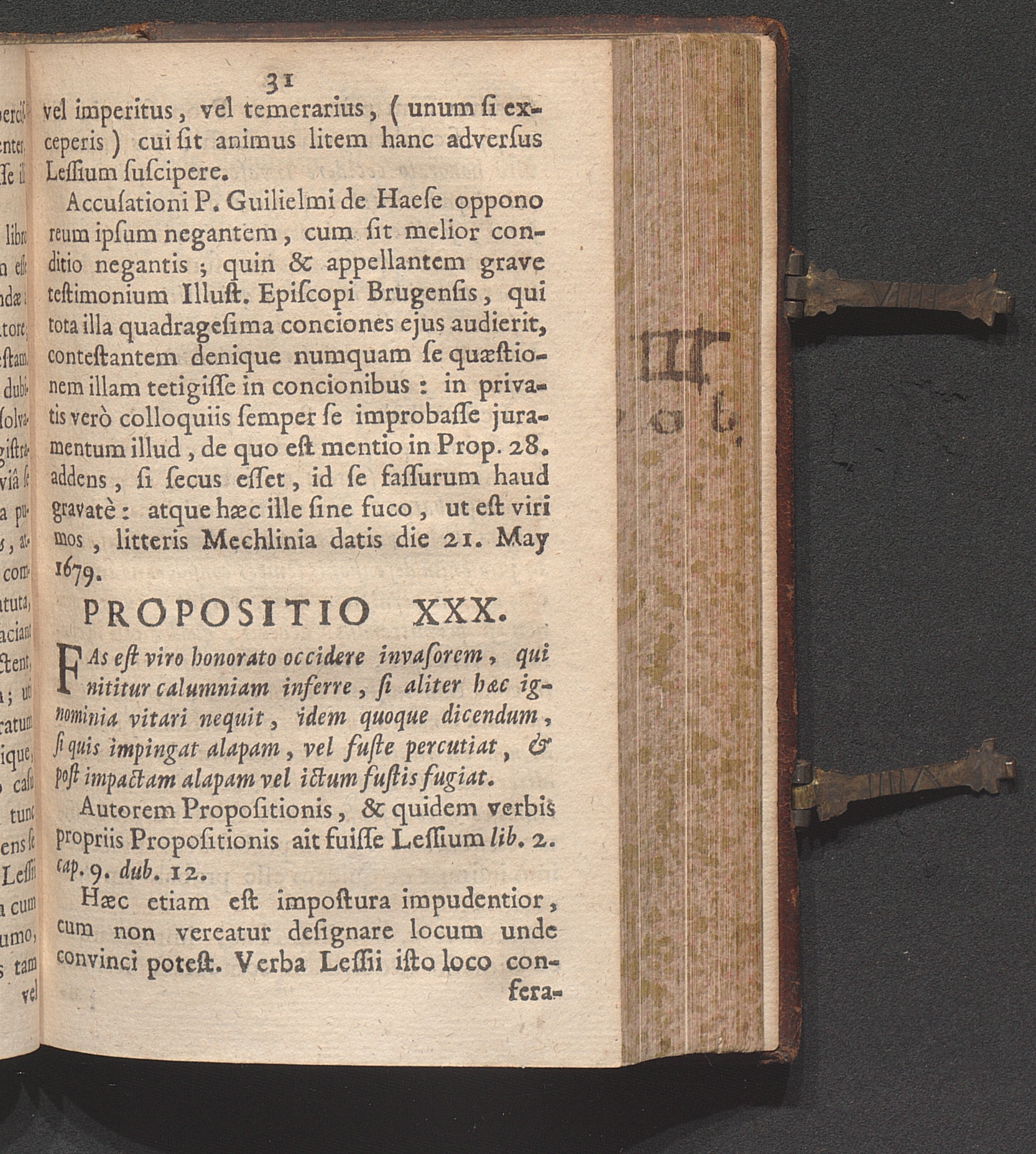 Propositio XXX. Fas est viro honorato occidere invasorem, qui nititur calumniam inferre,[...]