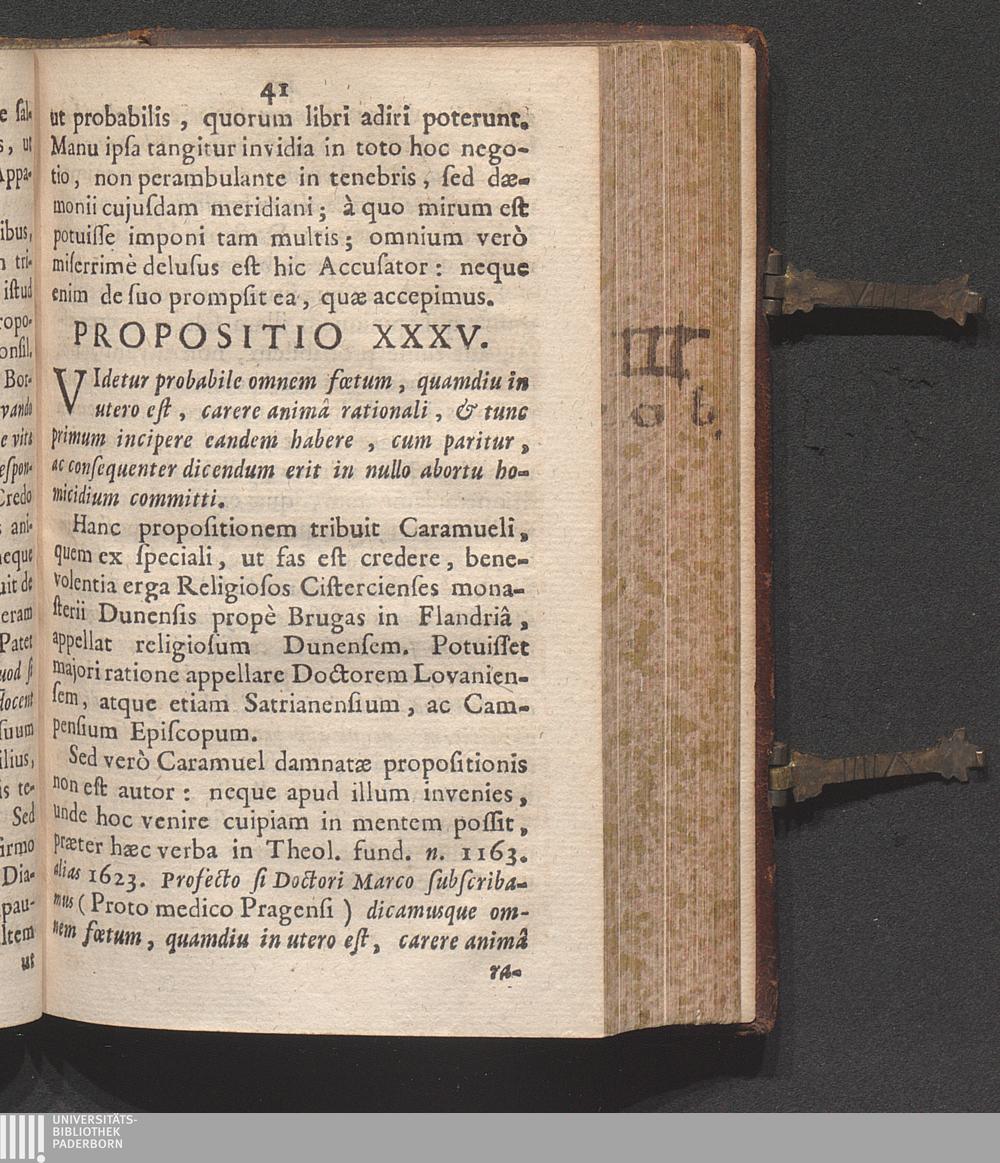 Propositio XXXV. Videtur probabile omnem fœtum, quamdiu in utero est, carere animâ[...]