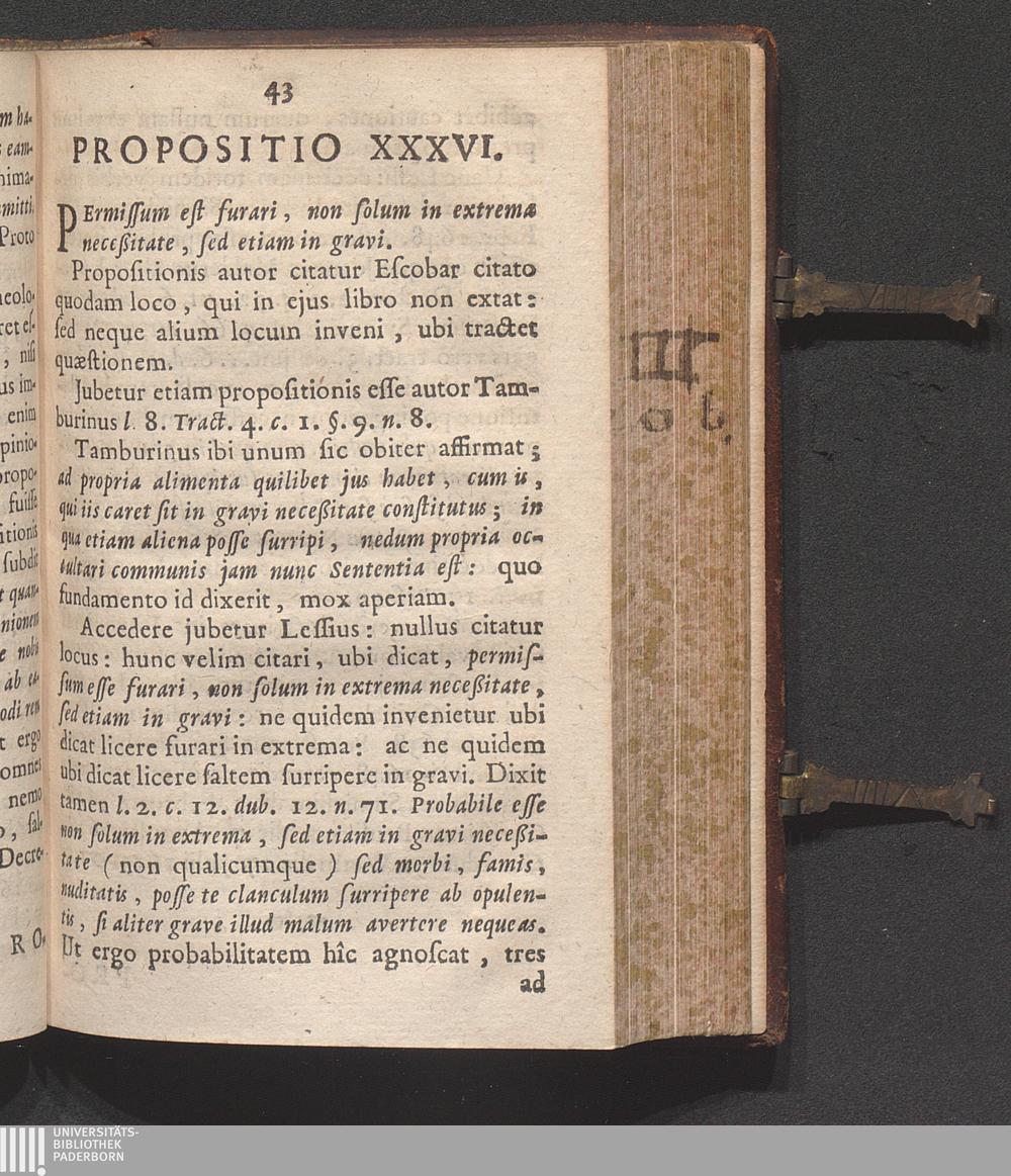 Propositio XXXVI. Permissum est furari, non solum in extrema neceßitate, sed etiam[...]