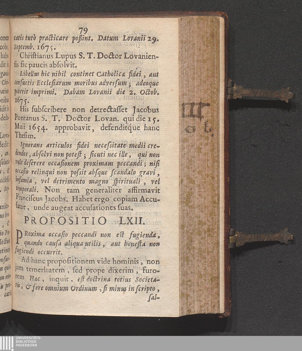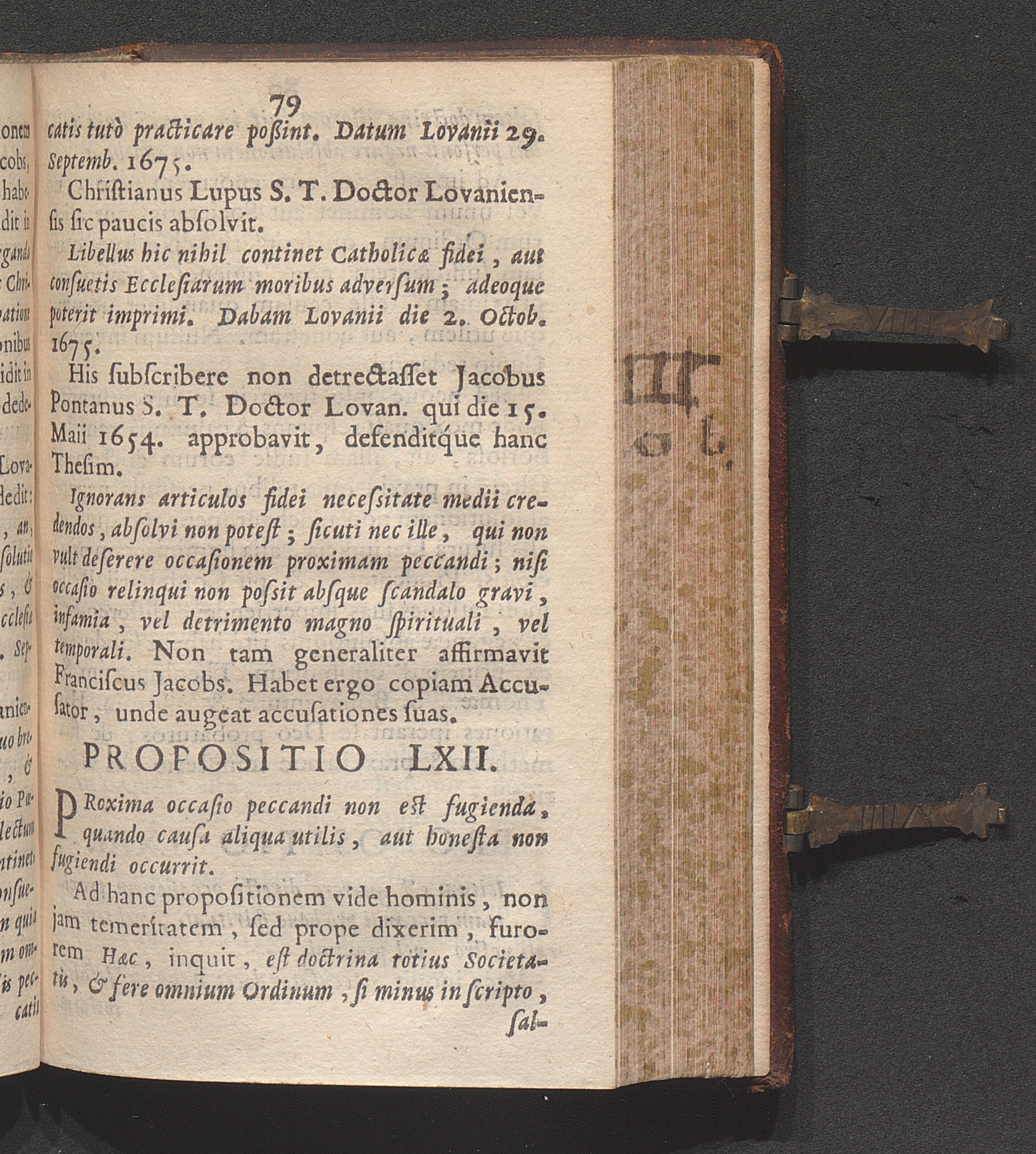 Propositio LXII. Proxima occasio peccandi non est fugienda, quando causa aliqua utilis,[...]