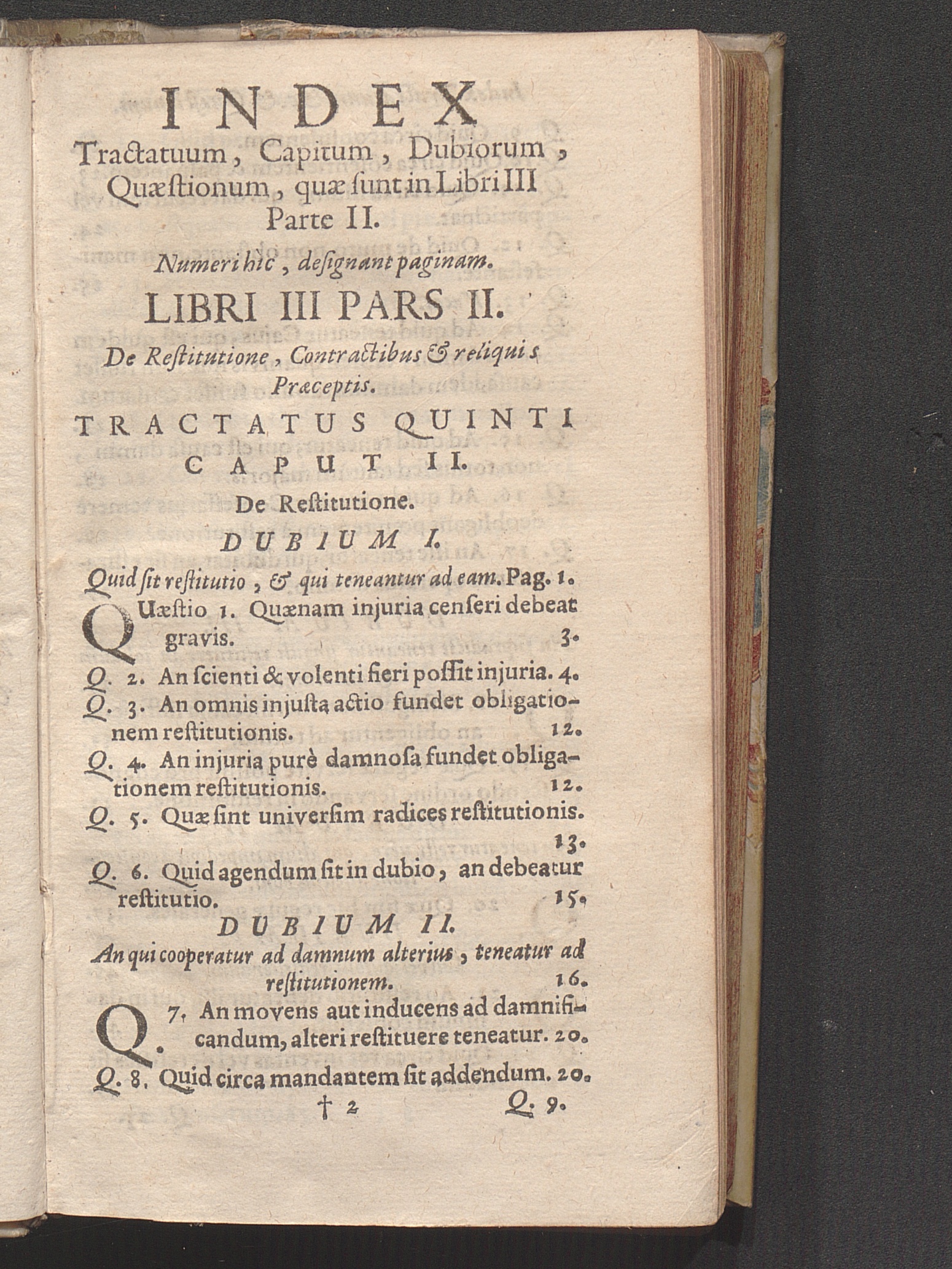 Index Tractatuum, Capitum, Dubiorum, Quӕstionum, quӕ sunt in Libri III Parte II.