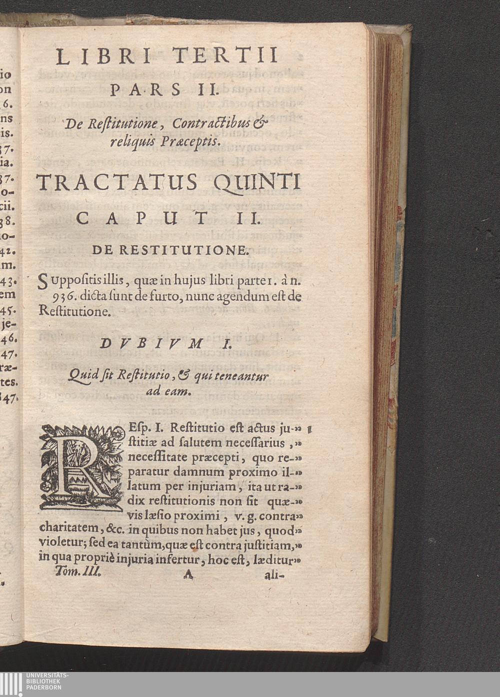 Libri III Pars II. De Restitutione, Contractibus & reliquis Prӕceptis.