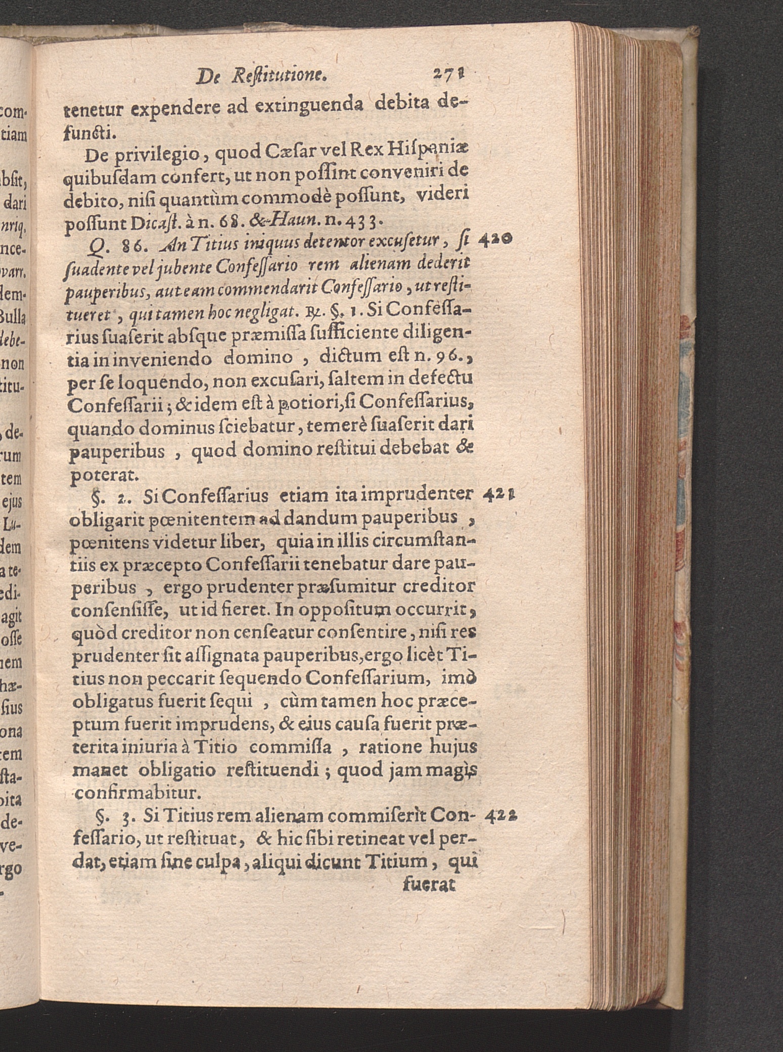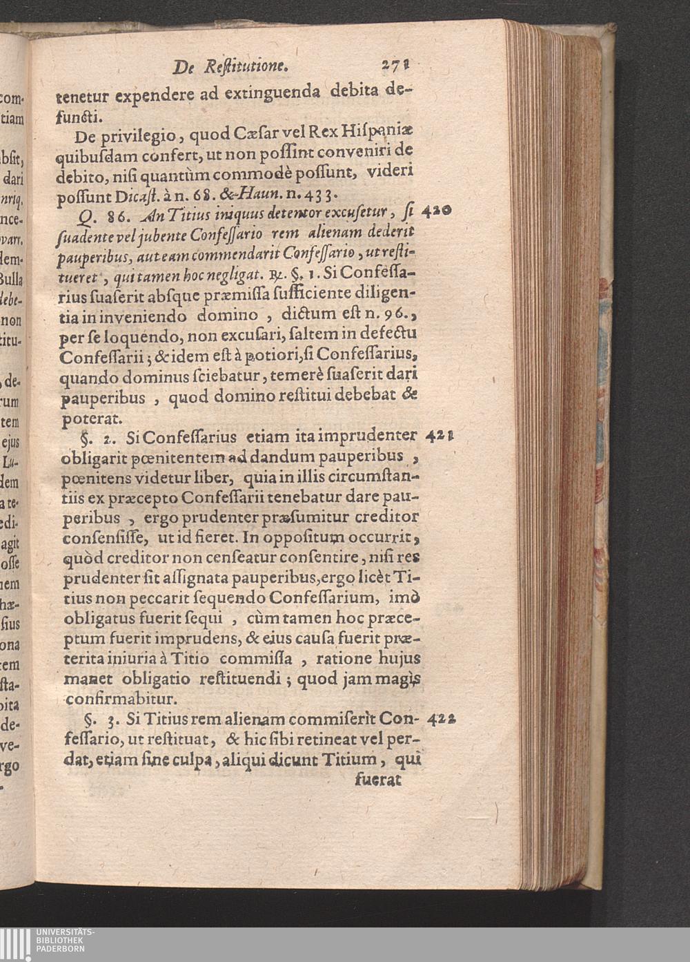 Q. 86. An Titius, iniquus detentor, excusetur, si suadente vel jubente Confessario[...]