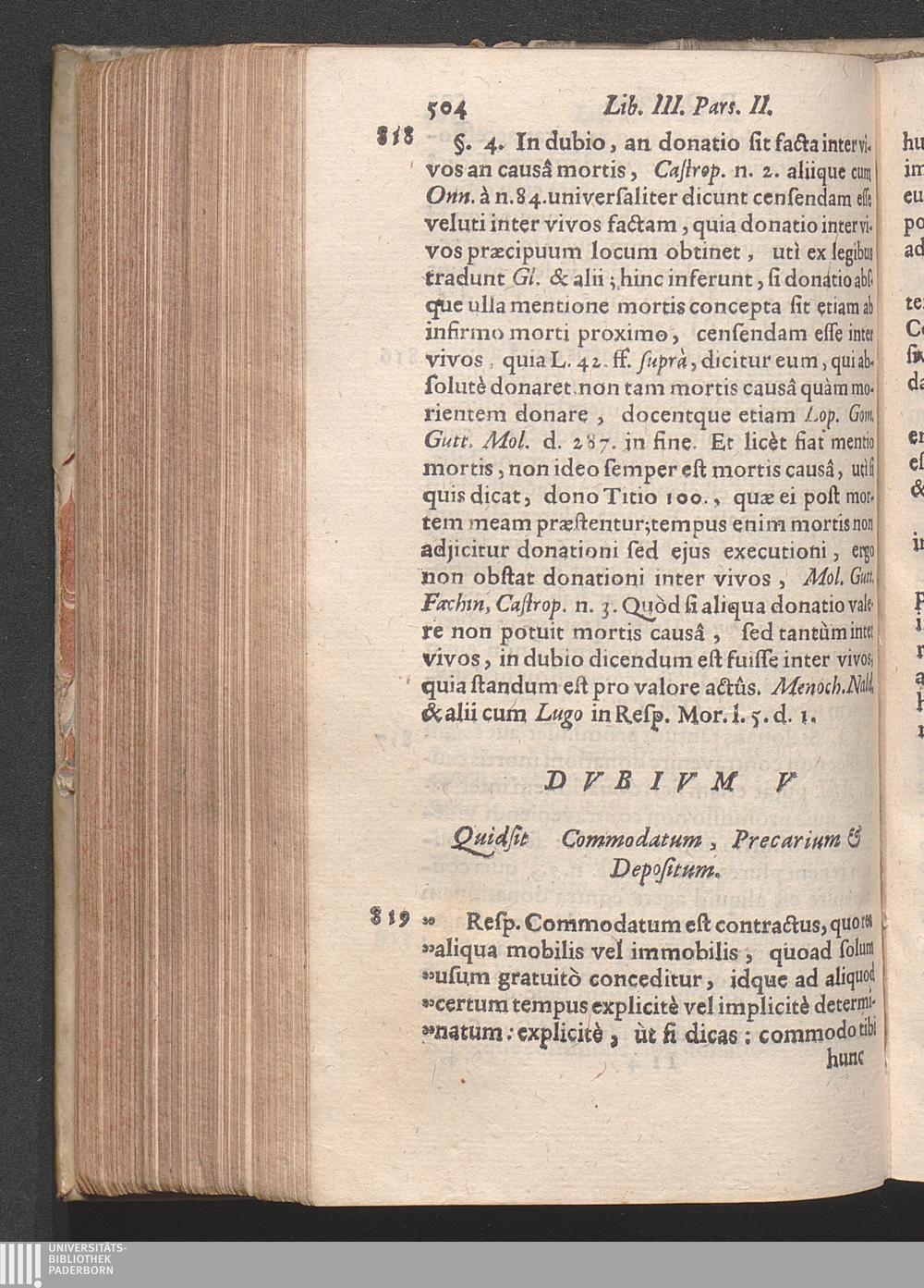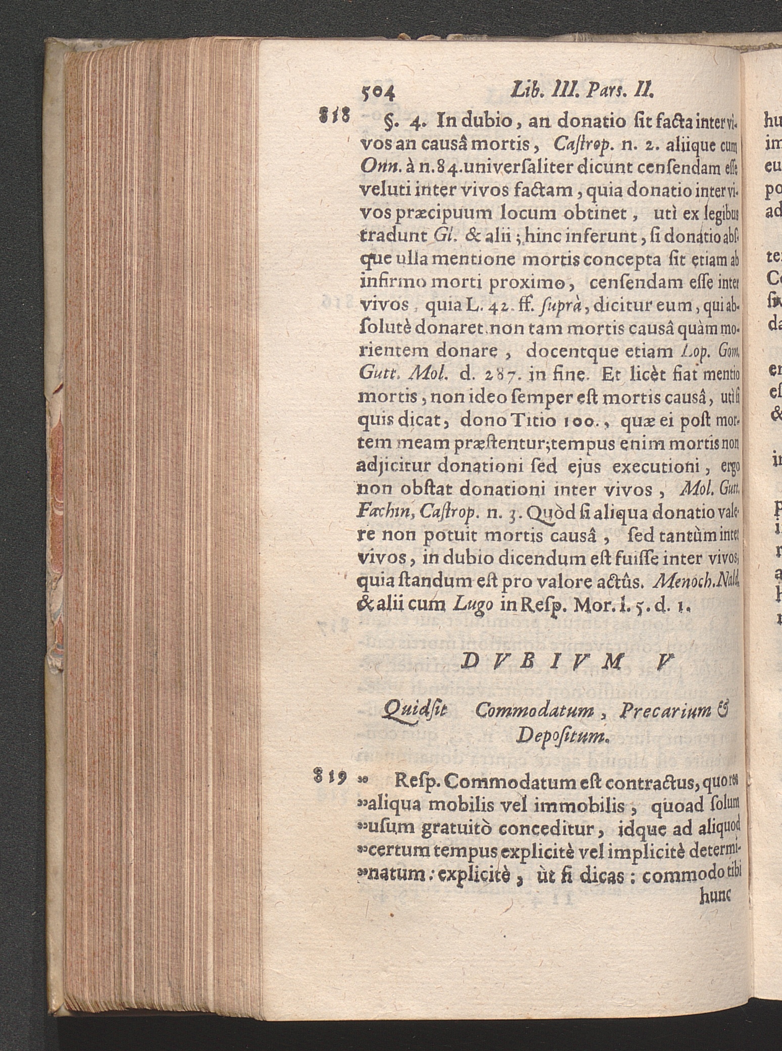 Dubium V. Quid sit commodatum, precarium & depositum.