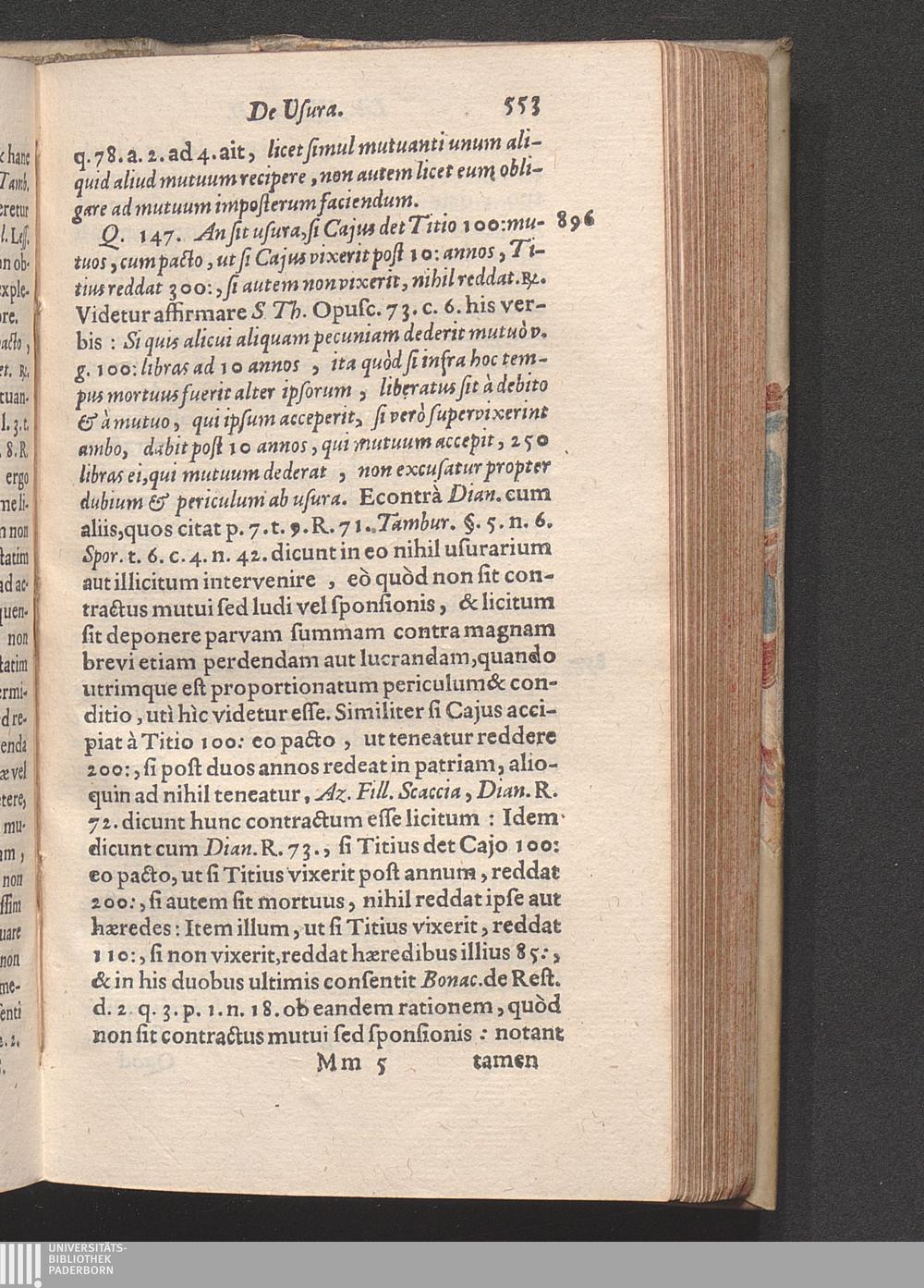 Q. 147. An sit usura, si Cajus det Titio 100. mutuos, cum pacto, ut si Cajus post[...]