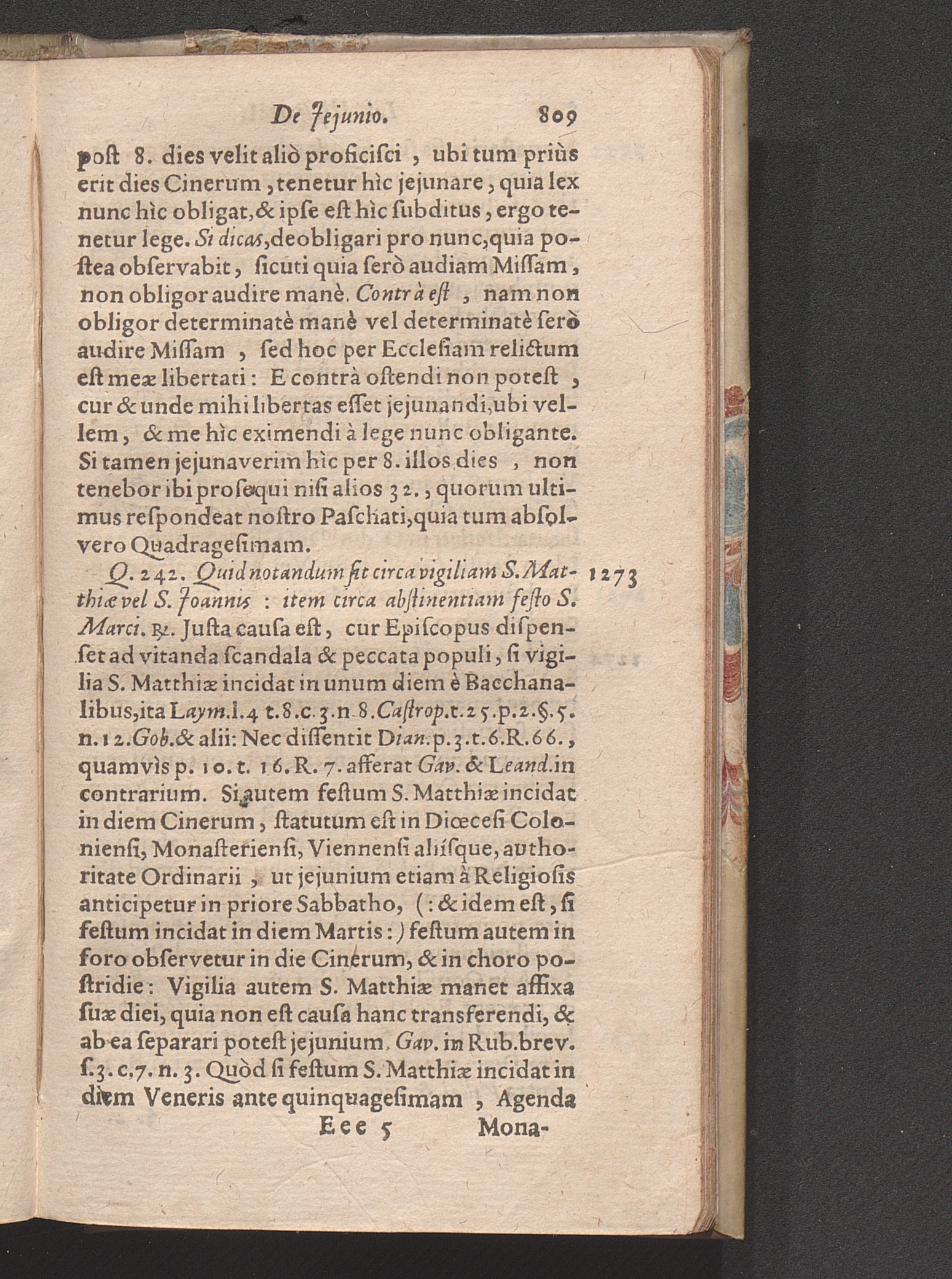 Q. 242. Quid notandum sit circa vigiliam S. Matthiӕ & S. Joannis: item circa abstinentiam[...]