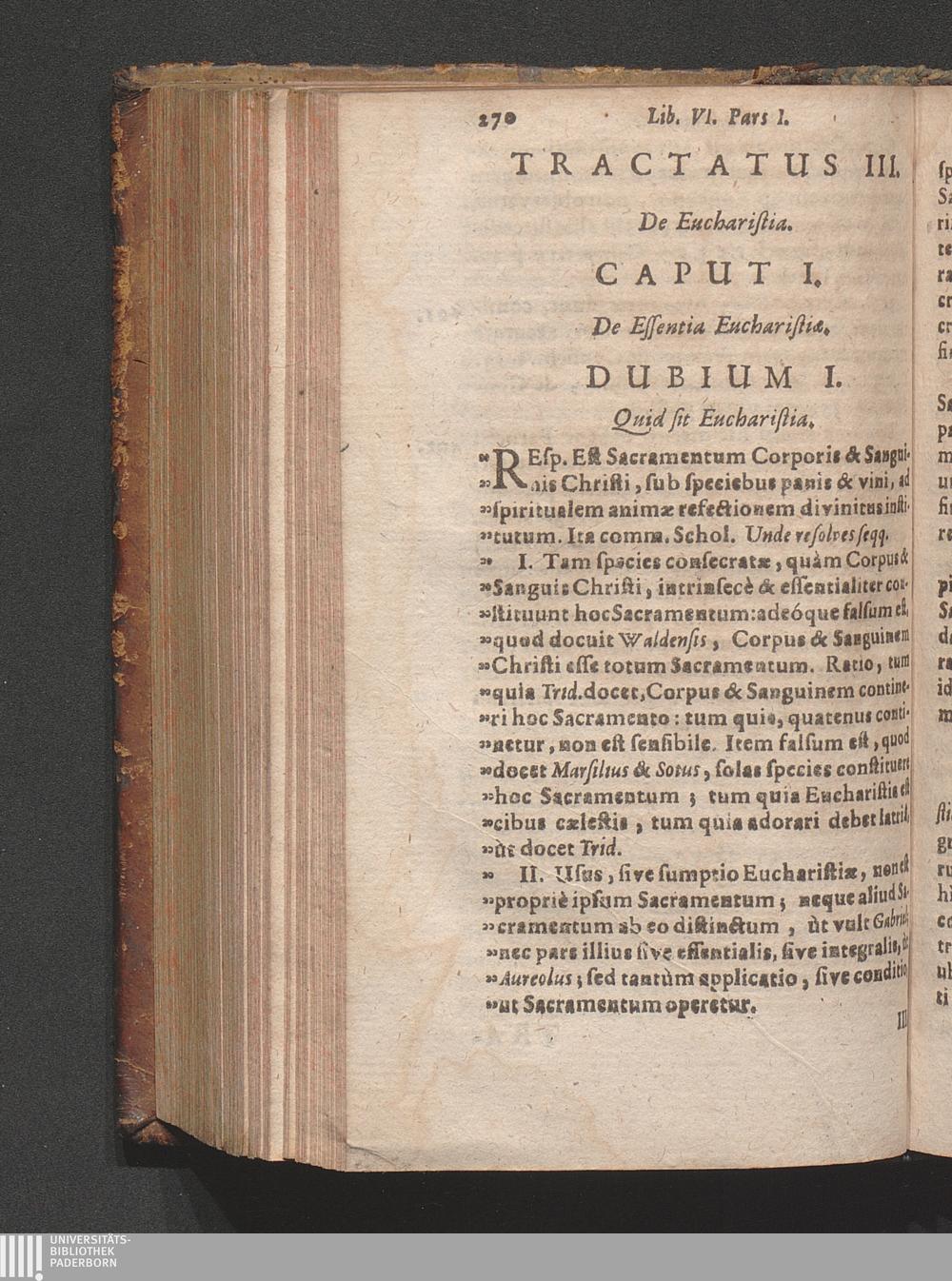 Tractatus III. De Eucharistia.