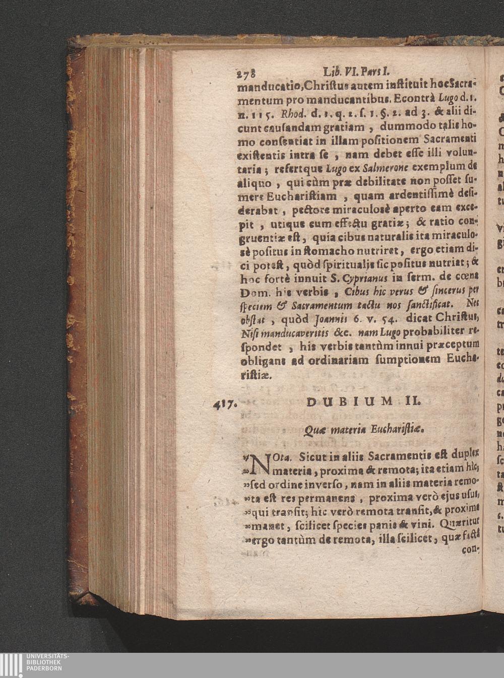 Dubium II. Quӕ materia Eucharistiӕ.