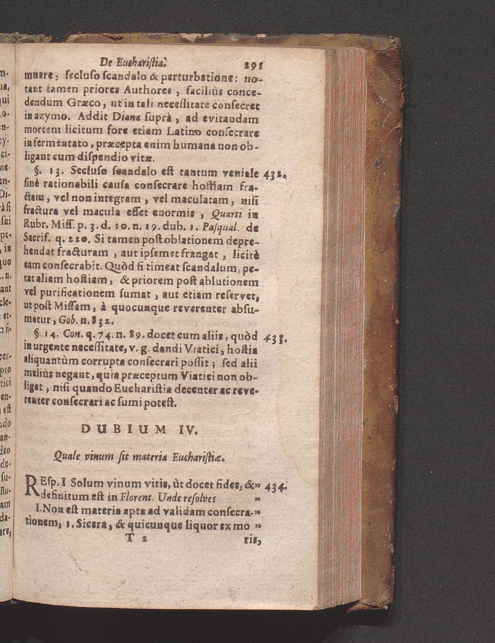 Dubium IV. Quale vinum sit materia Eucharistiӕ.
