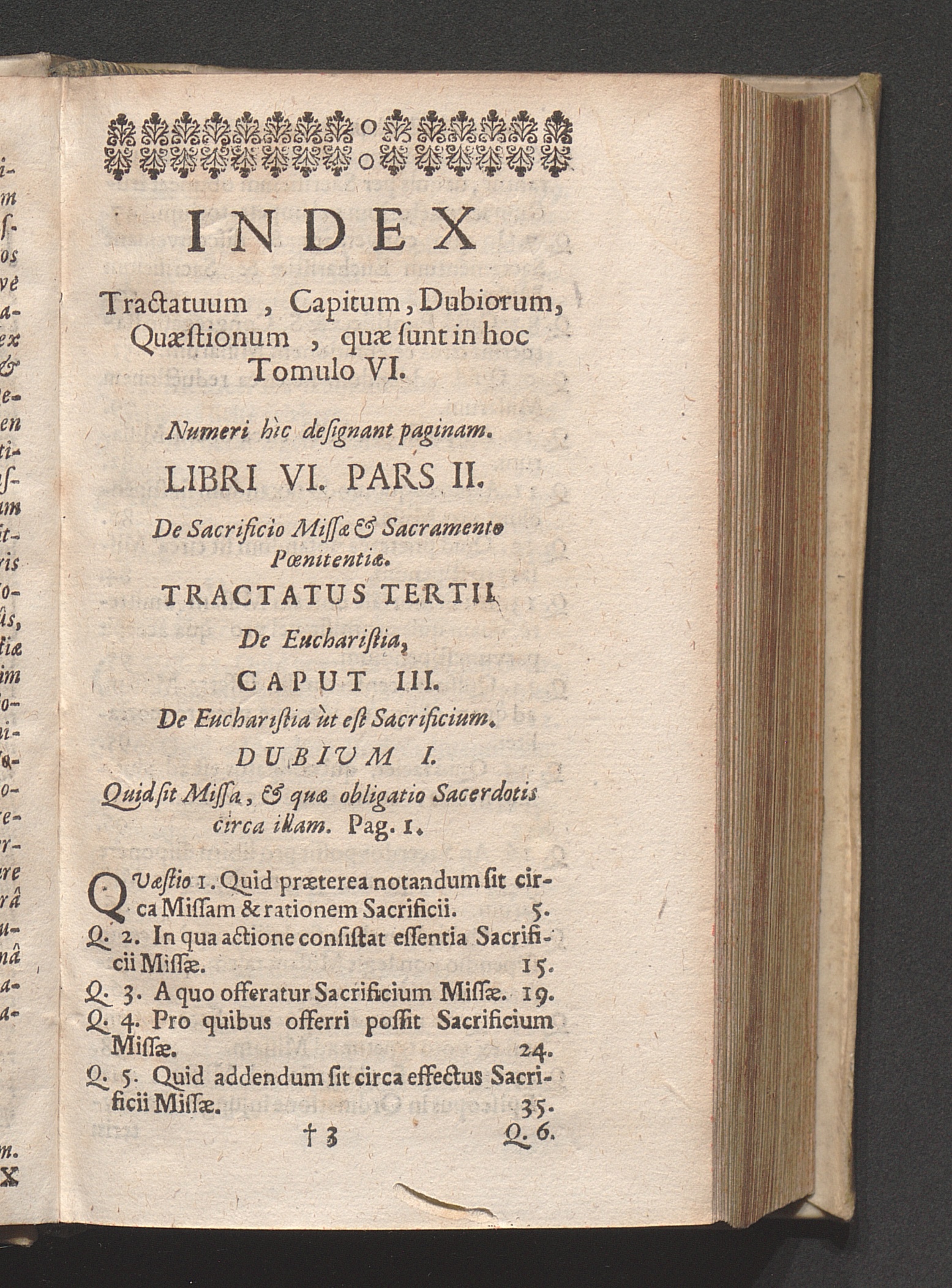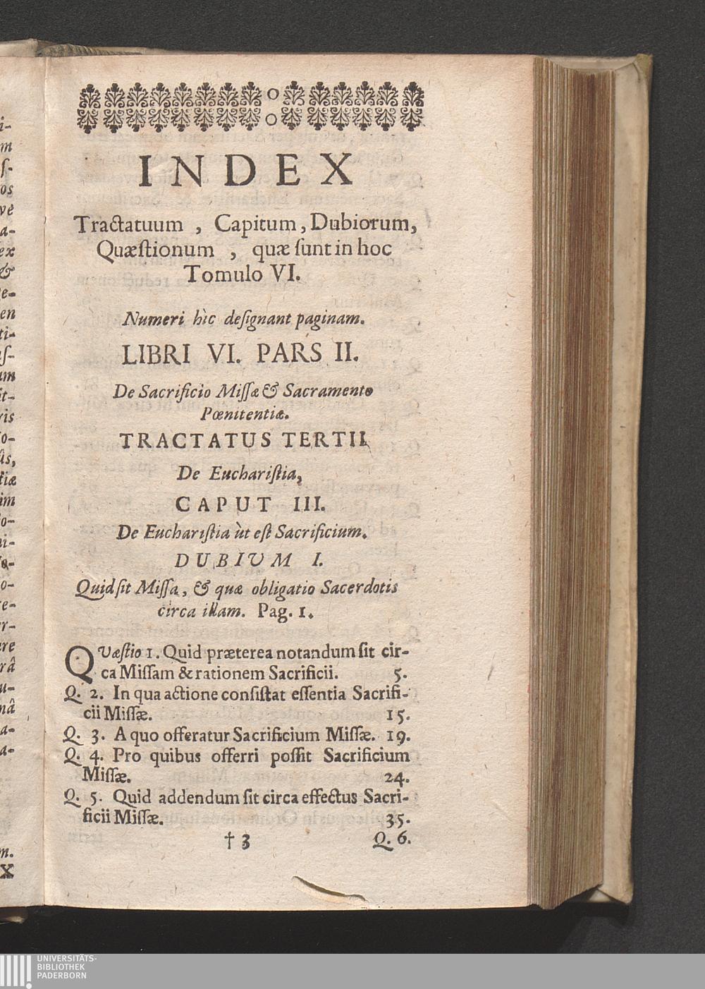 Index Tractatuum, Capitum, Dubiorum, Quæstionum, quæ sunt in hoc Tomulo VI.