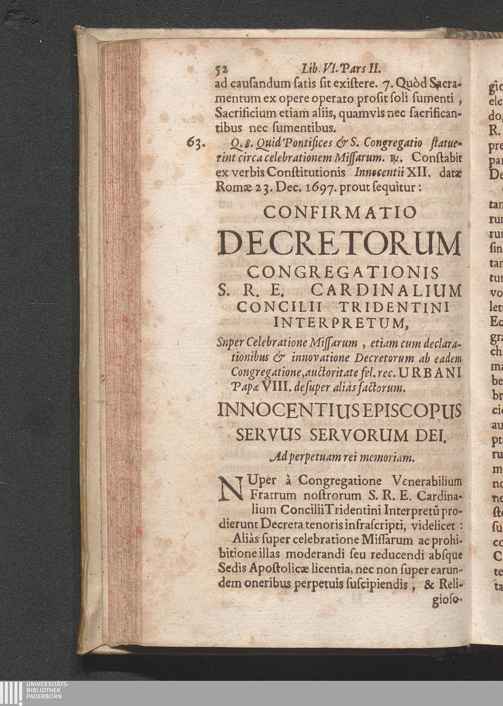 Libri VI. Pars II. De Sacrificio Missæ & Sacramento Pœnitentiæ.