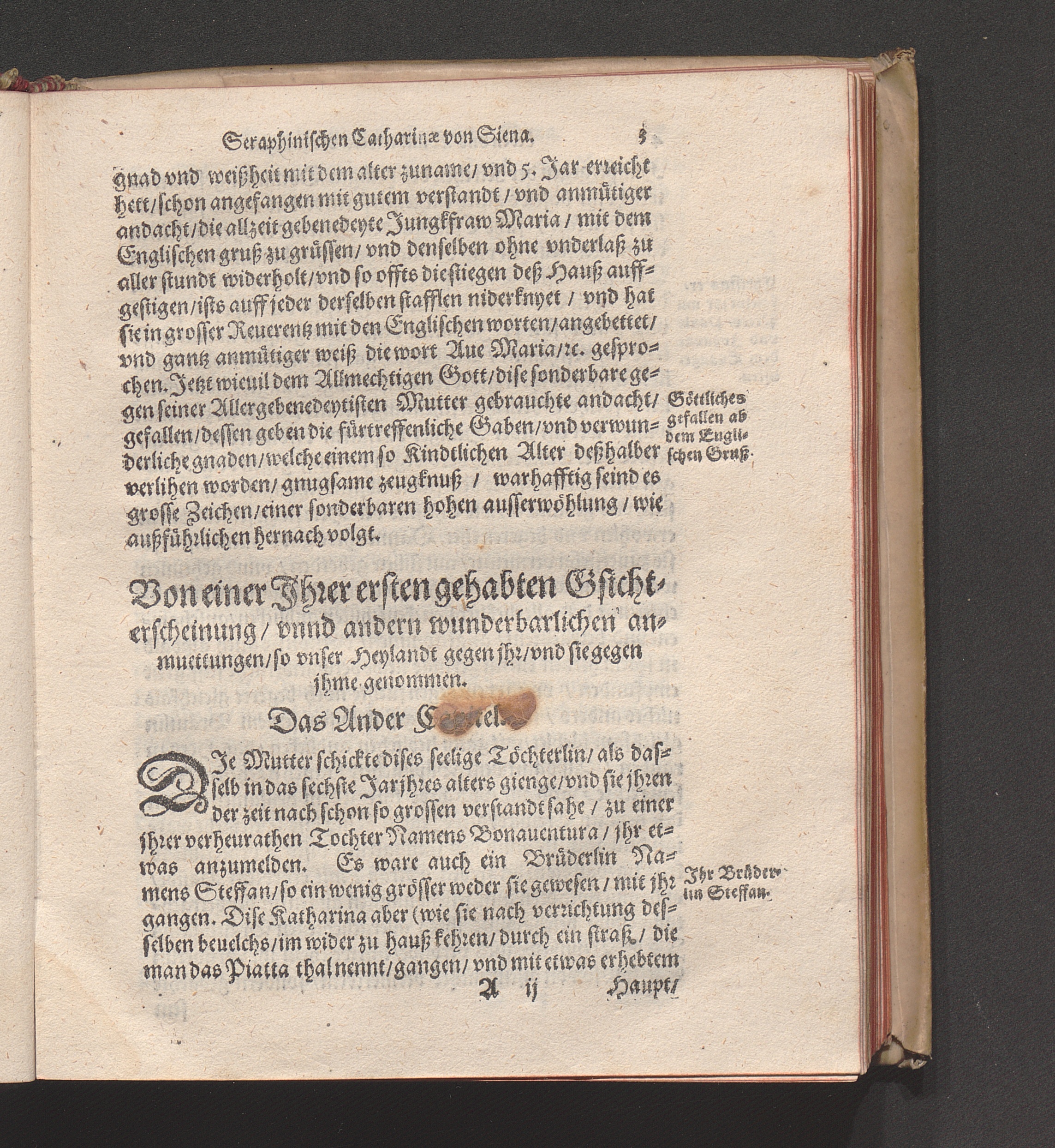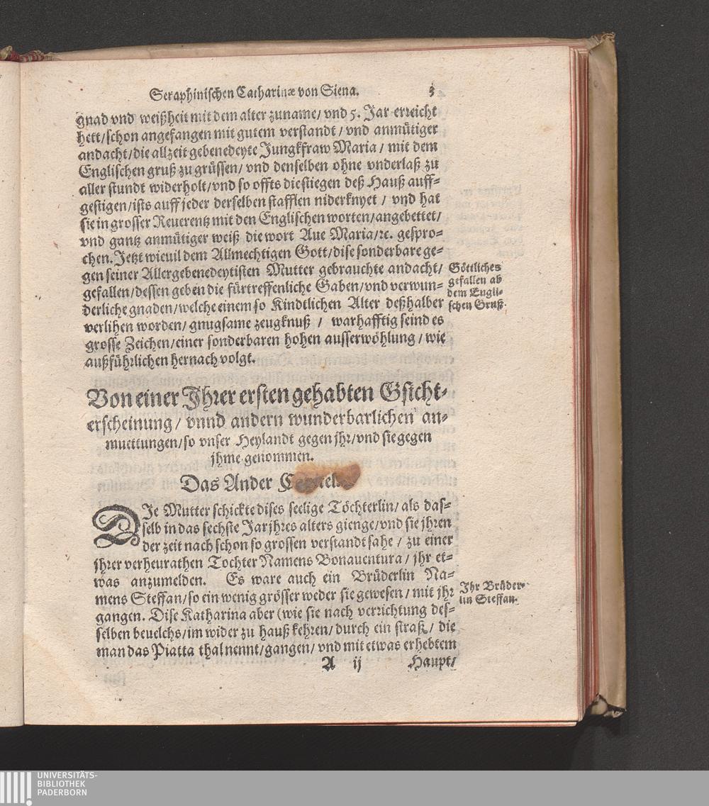 Höchst Wunderbarliches Leben/ vnd allerseligstes absterben/ sowol grosse Wunderwerck/ als auch gar herrliche/ fürtreffliche/ allerChristlichste/ von Him[m]el gefloßne Lehr/ der heiligen/ sonderbaren/ ausserwöhlten/ geliebten/ Seraphinischen vermählten Braut Jesv Christi/ Katharinæ von Siena/ der dritten Regel deß heiligen Dominici / Anfangs durch ihren Beichtvatter Beatum Raymundum, de Capua, gewesten Generalem Sacri Ordinis Prædicatorum, (deß auch die andere hieneben stehendte Authores bestettigt) inn Latein beschriben/ vnd durch F. Ambrosium Catharinum in die Welsch: An ietzo aber durch Hanßen Gaßner/ trewlich inn vnser Teutsche Sprach gebracht vnd verfertigt