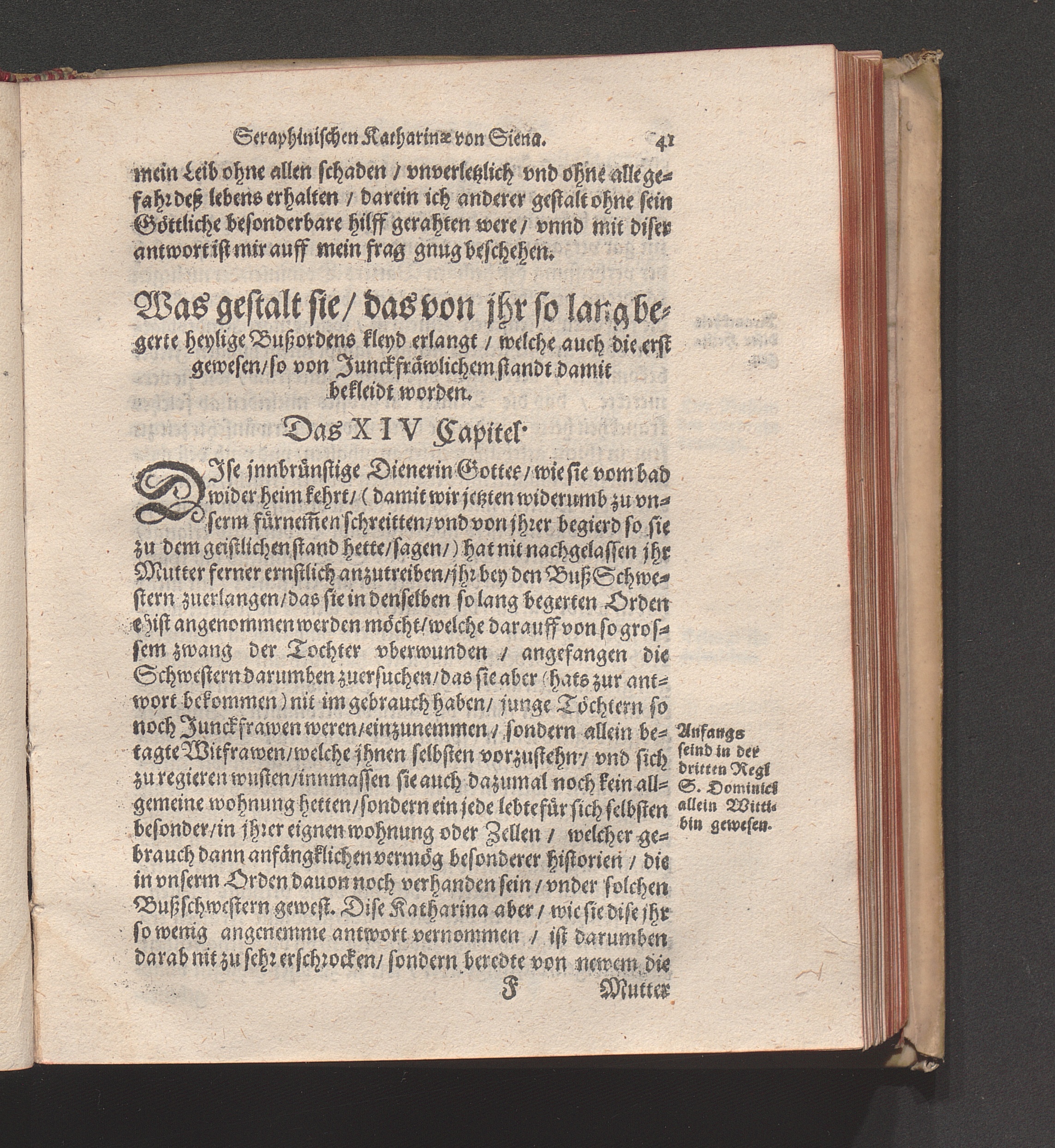 Höchst Wunderbarliches Leben/ vnd allerseligstes absterben/ sowol grosse Wunderwerck/ als auch gar herrliche/ fürtreffliche/ allerChristlichste/ von Him[m]el gefloßne Lehr/ der heiligen/ sonderbaren/ ausserwöhlten/ geliebten/ Seraphinischen vermählten Braut Jesv Christi/ Katharinæ von Siena/ der dritten Regel deß heiligen Dominici / Anfangs durch ihren Beichtvatter Beatum Raymundum, de Capua, gewesten Generalem Sacri Ordinis Prædicatorum, (deß auch die andere hieneben stehendte Authores bestettigt) inn Latein beschriben/ vnd durch F. Ambrosium Catharinum in die Welsch: An ietzo aber durch Hanßen Gaßner/ trewlich inn vnser Teutsche Sprach gebracht vnd verfertigt
