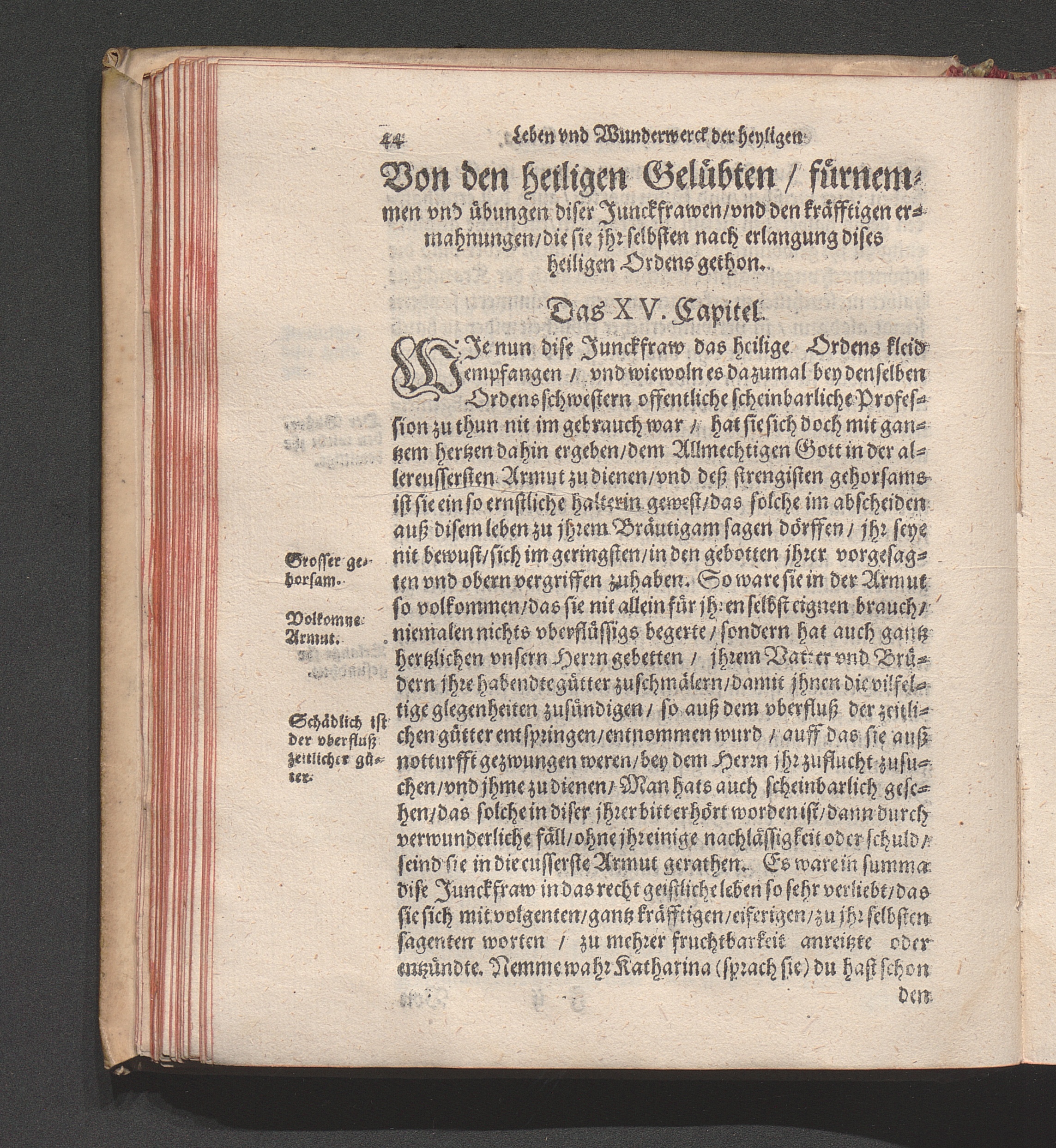 Höchst Wunderbarliches Leben/ vnd allerseligstes absterben/ sowol grosse Wunderwerck/ als auch gar herrliche/ fürtreffliche/ allerChristlichste/ von Him[m]el gefloßne Lehr/ der heiligen/ sonderbaren/ ausserwöhlten/ geliebten/ Seraphinischen vermählten Braut Jesv Christi/ Katharinæ von Siena/ der dritten Regel deß heiligen Dominici / Anfangs durch ihren Beichtvatter Beatum Raymundum, de Capua, gewesten Generalem Sacri Ordinis Prædicatorum, (deß auch die andere hieneben stehendte Authores bestettigt) inn Latein beschriben/ vnd durch F. Ambrosium Catharinum in die Welsch: An ietzo aber durch Hanßen Gaßner/ trewlich inn vnser Teutsche Sprach gebracht vnd verfertigt