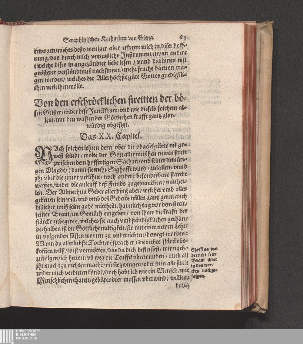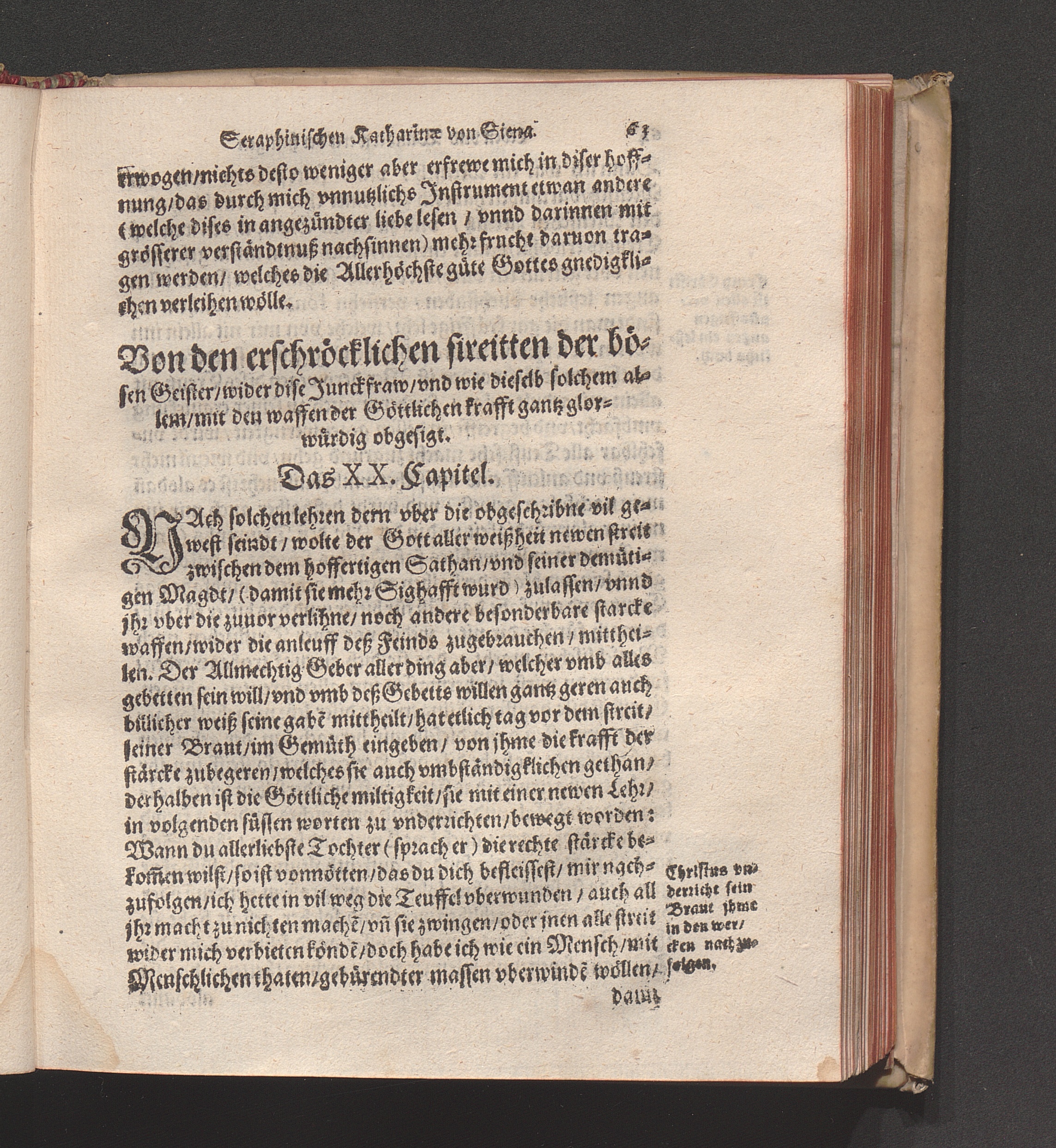 Höchst Wunderbarliches Leben/ vnd allerseligstes absterben/ sowol grosse Wunderwerck/ als auch gar herrliche/ fürtreffliche/ allerChristlichste/ von Him[m]el gefloßne Lehr/ der heiligen/ sonderbaren/ ausserwöhlten/ geliebten/ Seraphinischen vermählten Braut Jesv Christi/ Katharinæ von Siena/ der dritten Regel deß heiligen Dominici / Anfangs durch ihren Beichtvatter Beatum Raymundum, de Capua, gewesten Generalem Sacri Ordinis Prædicatorum, (deß auch die andere hieneben stehendte Authores bestettigt) inn Latein beschriben/ vnd durch F. Ambrosium Catharinum in die Welsch: An ietzo aber durch Hanßen Gaßner/ trewlich inn vnser Teutsche Sprach gebracht vnd verfertigt