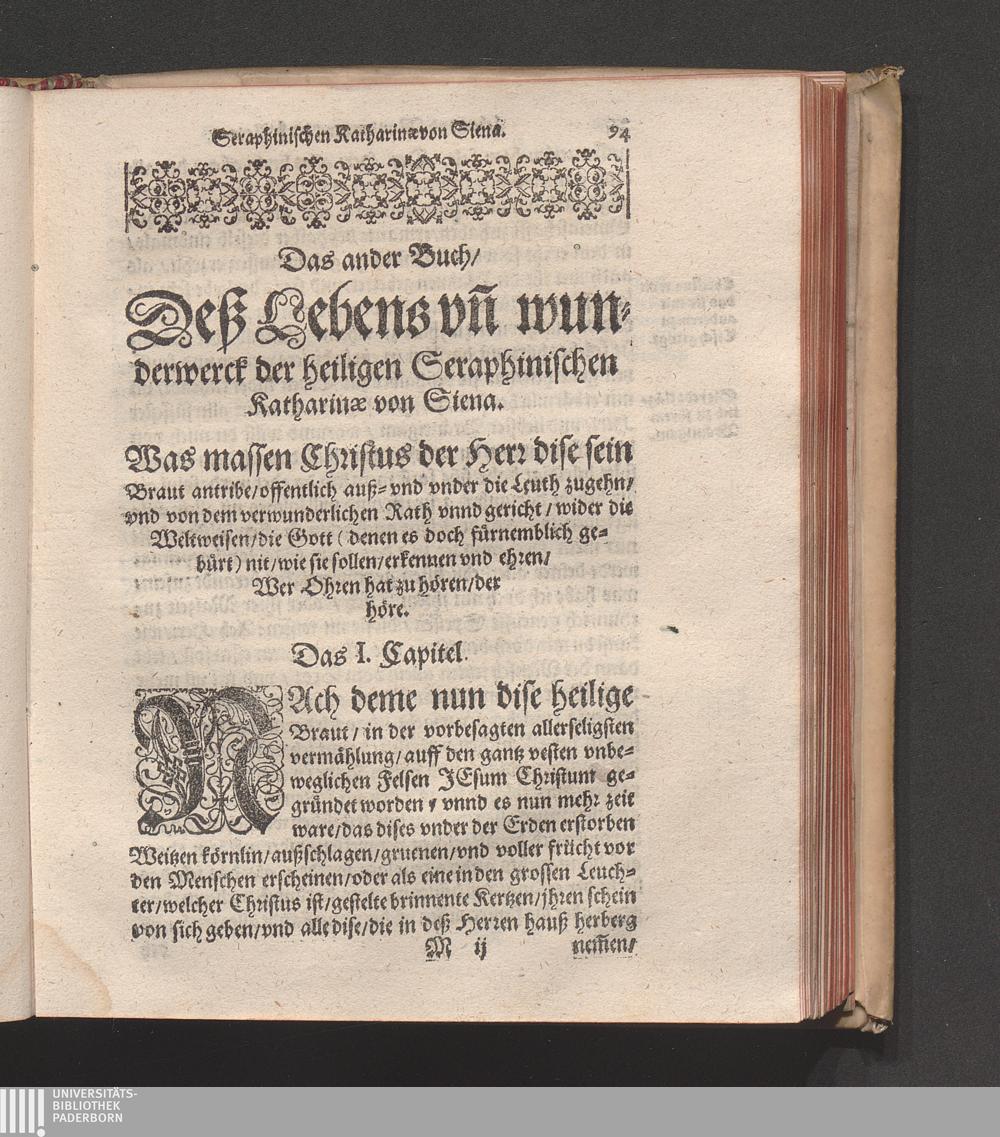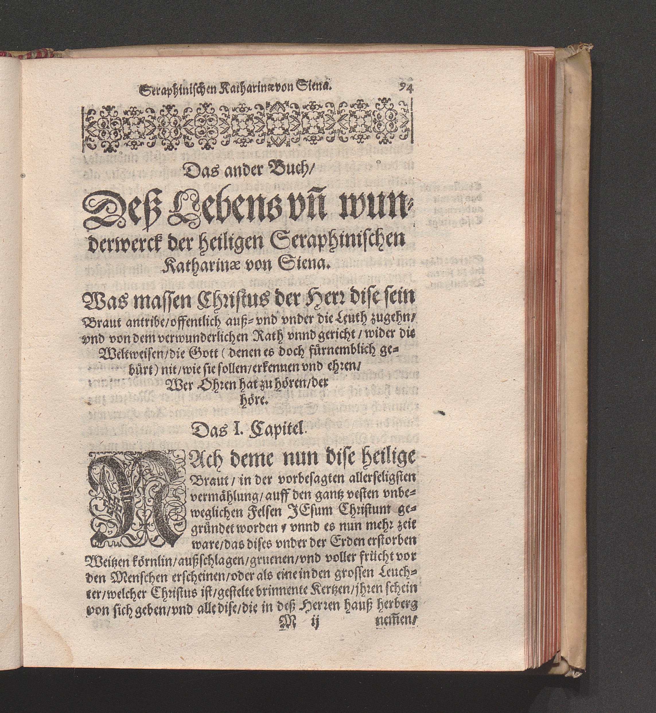 Höchst Wunderbarliches Leben/ vnd allerseligstes absterben/ sowol grosse Wunderwerck/ als auch gar herrliche/ fürtreffliche/ allerChristlichste/ von Him[m]el gefloßne Lehr/ der heiligen/ sonderbaren/ ausserwöhlten/ geliebten/ Seraphinischen vermählten Braut Jesv Christi/ Katharinæ von Siena/ der dritten Regel deß heiligen Dominici / Anfangs durch ihren Beichtvatter Beatum Raymundum, de Capua, gewesten Generalem Sacri Ordinis Prædicatorum, (deß auch die andere hieneben stehendte Authores bestettigt) inn Latein beschriben/ vnd durch F. Ambrosium Catharinum in die Welsch: An ietzo aber durch Hanßen Gaßner/ trewlich inn vnser Teutsche Sprach gebracht vnd verfertigt