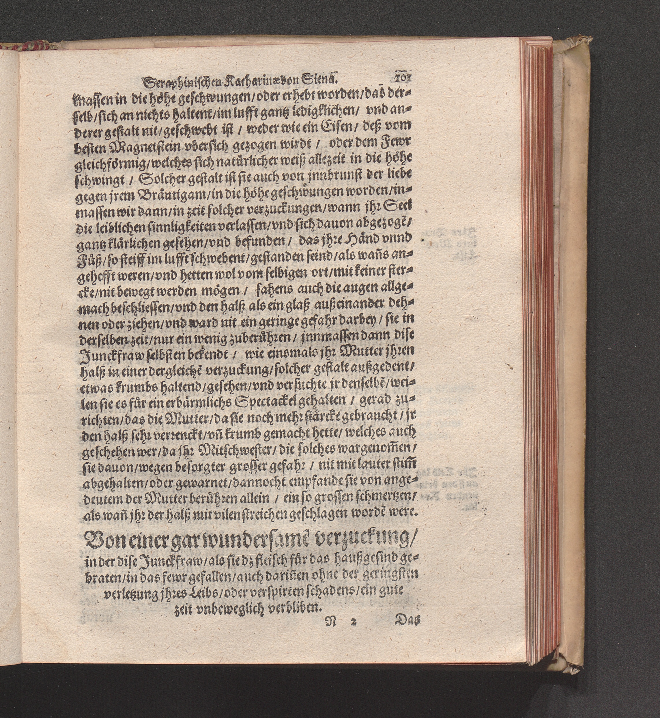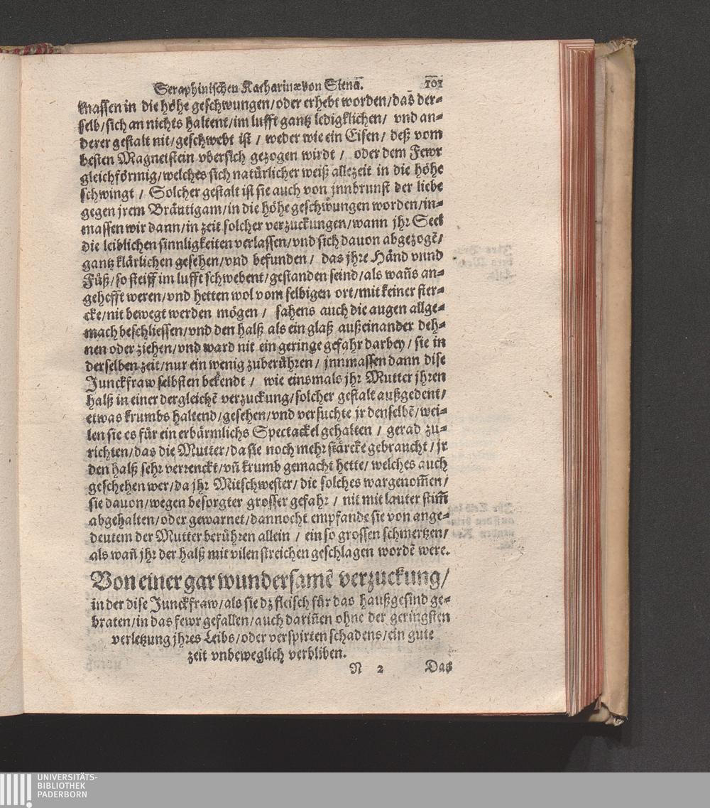 Höchst Wunderbarliches Leben/ vnd allerseligstes absterben/ sowol grosse Wunderwerck/ als auch gar herrliche/ fürtreffliche/ allerChristlichste/ von Him[m]el gefloßne Lehr/ der heiligen/ sonderbaren/ ausserwöhlten/ geliebten/ Seraphinischen vermählten Braut Jesv Christi/ Katharinæ von Siena/ der dritten Regel deß heiligen Dominici / Anfangs durch ihren Beichtvatter Beatum Raymundum, de Capua, gewesten Generalem Sacri Ordinis Prædicatorum, (deß auch die andere hieneben stehendte Authores bestettigt) inn Latein beschriben/ vnd durch F. Ambrosium Catharinum in die Welsch: An ietzo aber durch Hanßen Gaßner/ trewlich inn vnser Teutsche Sprach gebracht vnd verfertigt