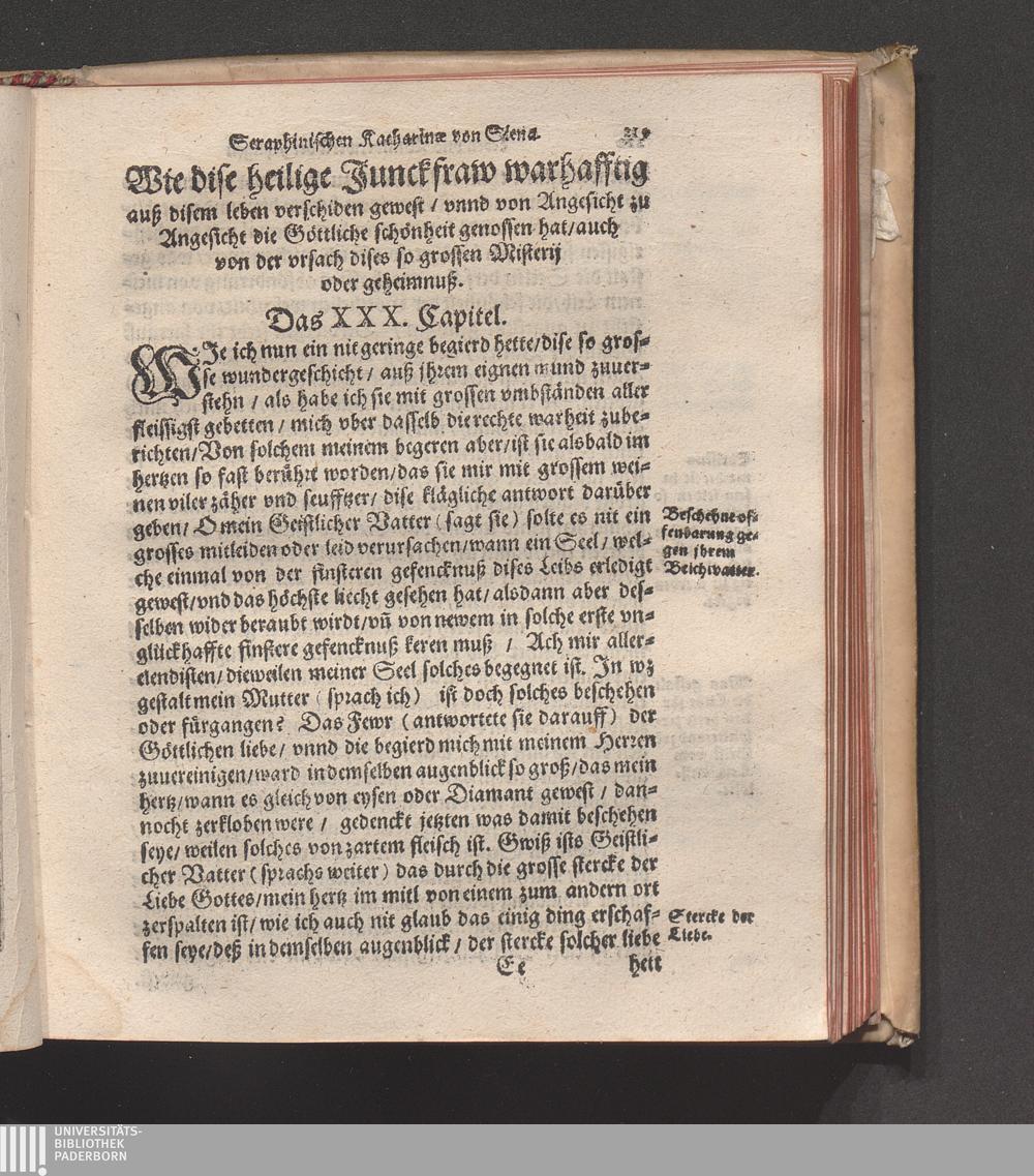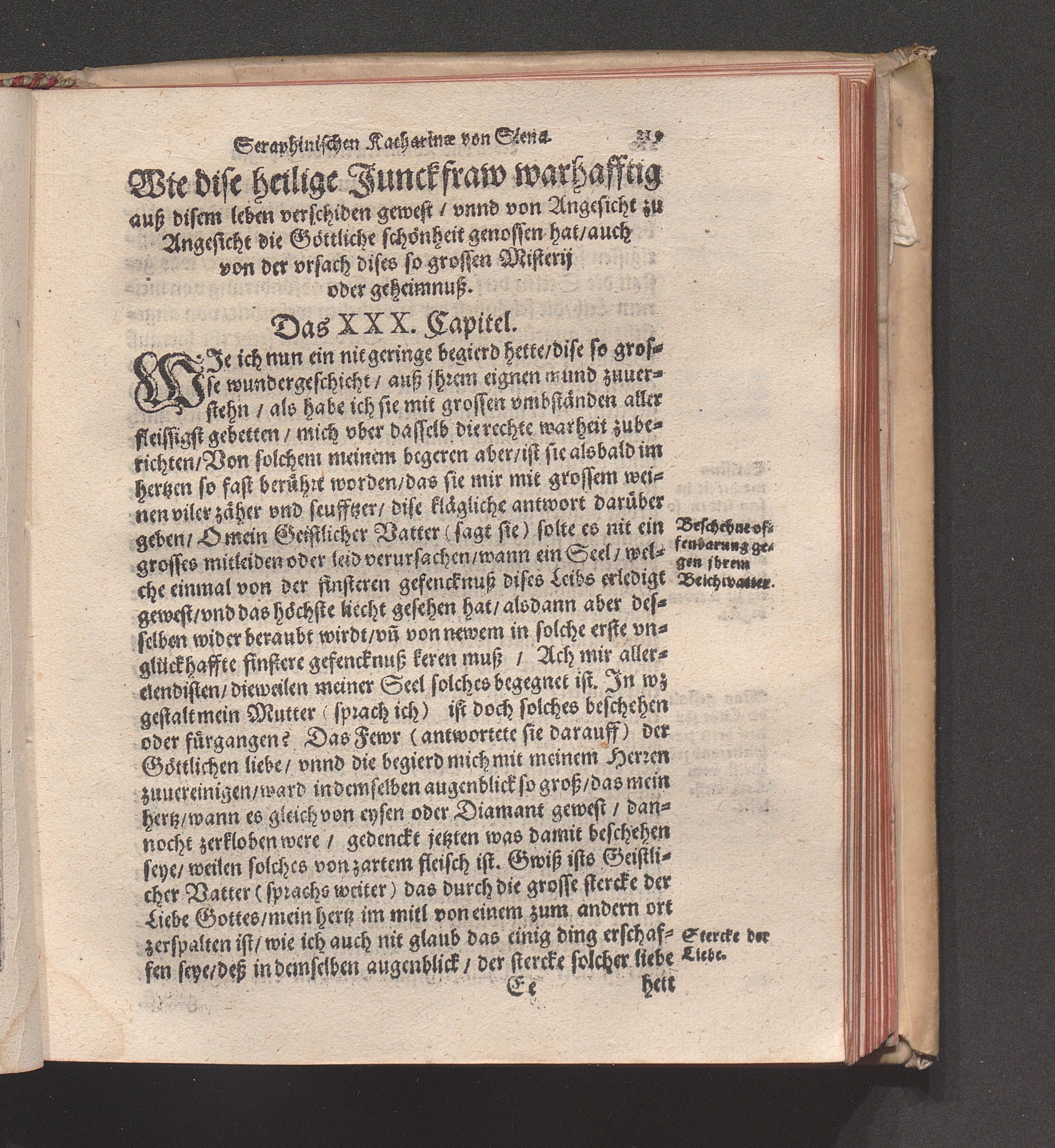 Höchst Wunderbarliches Leben/ vnd allerseligstes absterben/ sowol grosse Wunderwerck/ als auch gar herrliche/ fürtreffliche/ allerChristlichste/ von Him[m]el gefloßne Lehr/ der heiligen/ sonderbaren/ ausserwöhlten/ geliebten/ Seraphinischen vermählten Braut Jesv Christi/ Katharinæ von Siena/ der dritten Regel deß heiligen Dominici / Anfangs durch ihren Beichtvatter Beatum Raymundum, de Capua, gewesten Generalem Sacri Ordinis Prædicatorum, (deß auch die andere hieneben stehendte Authores bestettigt) inn Latein beschriben/ vnd durch F. Ambrosium Catharinum in die Welsch: An ietzo aber durch Hanßen Gaßner/ trewlich inn vnser Teutsche Sprach gebracht vnd verfertigt