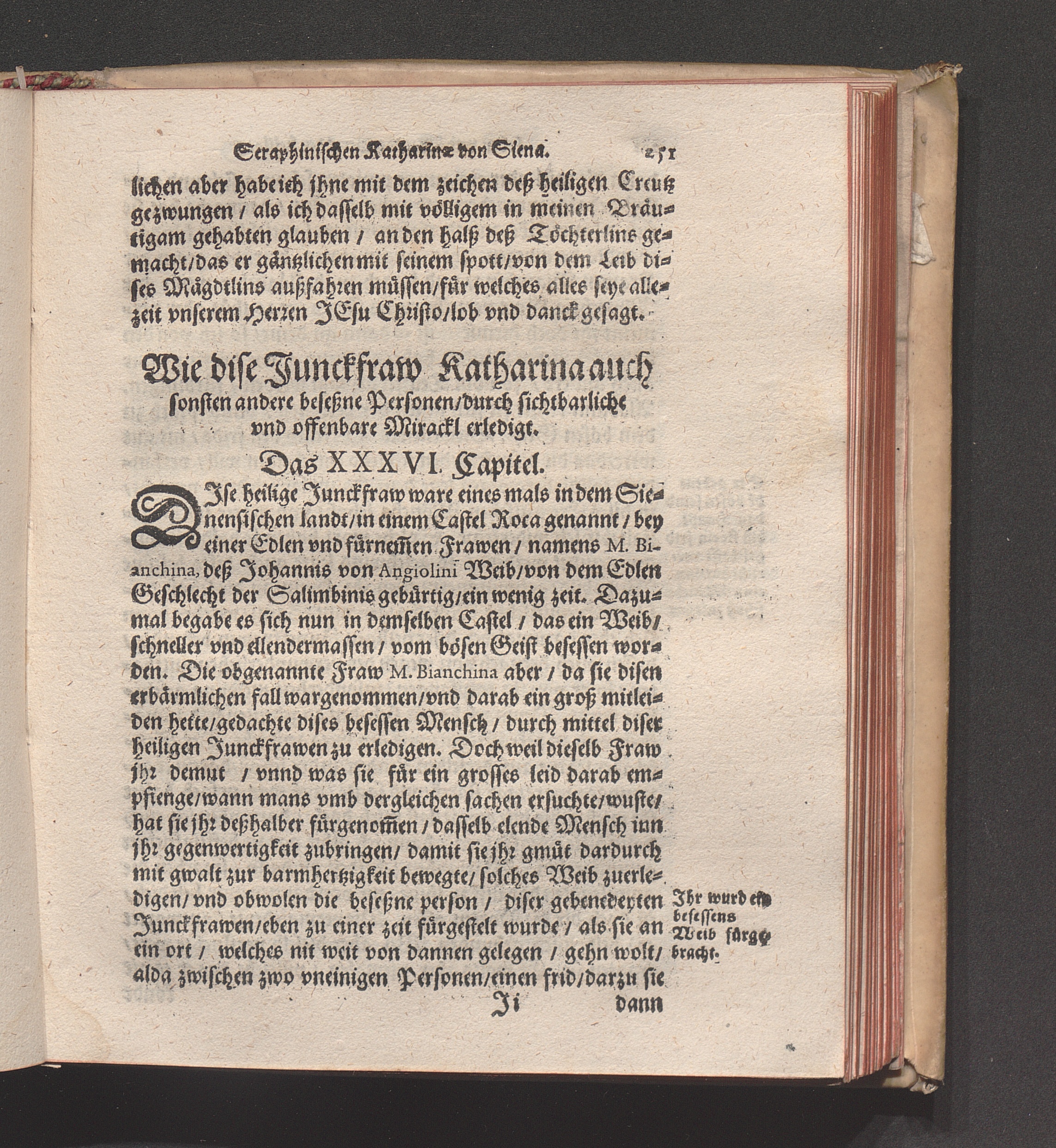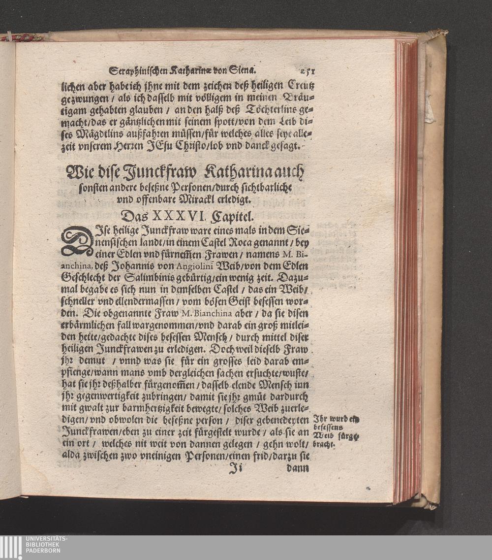 Höchst Wunderbarliches Leben/ vnd allerseligstes absterben/ sowol grosse Wunderwerck/ als auch gar herrliche/ fürtreffliche/ allerChristlichste/ von Him[m]el gefloßne Lehr/ der heiligen/ sonderbaren/ ausserwöhlten/ geliebten/ Seraphinischen vermählten Braut Jesv Christi/ Katharinæ von Siena/ der dritten Regel deß heiligen Dominici / Anfangs durch ihren Beichtvatter Beatum Raymundum, de Capua, gewesten Generalem Sacri Ordinis Prædicatorum, (deß auch die andere hieneben stehendte Authores bestettigt) inn Latein beschriben/ vnd durch F. Ambrosium Catharinum in die Welsch: An ietzo aber durch Hanßen Gaßner/ trewlich inn vnser Teutsche Sprach gebracht vnd verfertigt