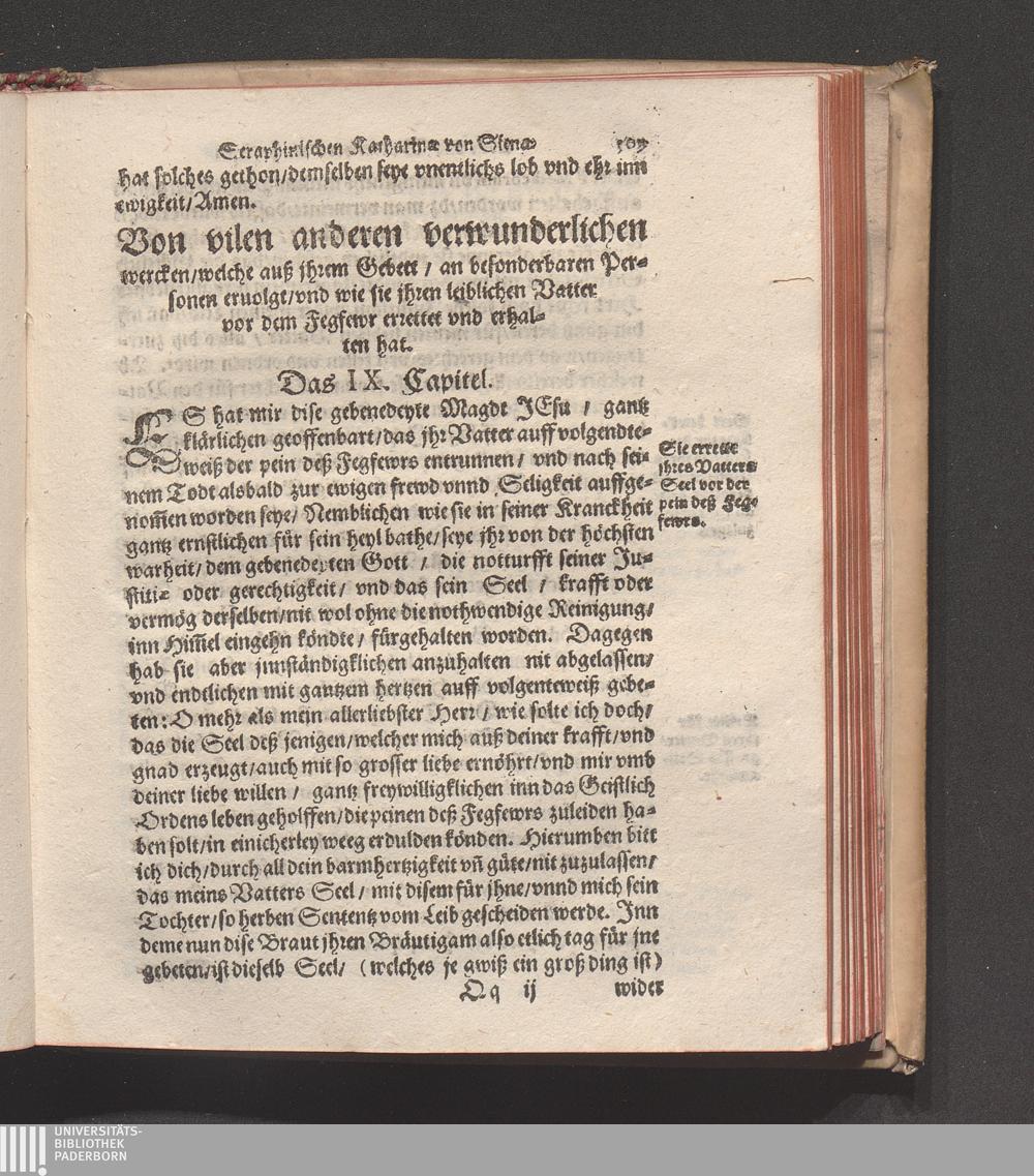 Höchst Wunderbarliches Leben/ vnd allerseligstes absterben/ sowol grosse Wunderwerck/ als auch gar herrliche/ fürtreffliche/ allerChristlichste/ von Him[m]el gefloßne Lehr/ der heiligen/ sonderbaren/ ausserwöhlten/ geliebten/ Seraphinischen vermählten Braut Jesv Christi/ Katharinæ von Siena/ der dritten Regel deß heiligen Dominici / Anfangs durch ihren Beichtvatter Beatum Raymundum, de Capua, gewesten Generalem Sacri Ordinis Prædicatorum, (deß auch die andere hieneben stehendte Authores bestettigt) inn Latein beschriben/ vnd durch F. Ambrosium Catharinum in die Welsch: An ietzo aber durch Hanßen Gaßner/ trewlich inn vnser Teutsche Sprach gebracht vnd verfertigt