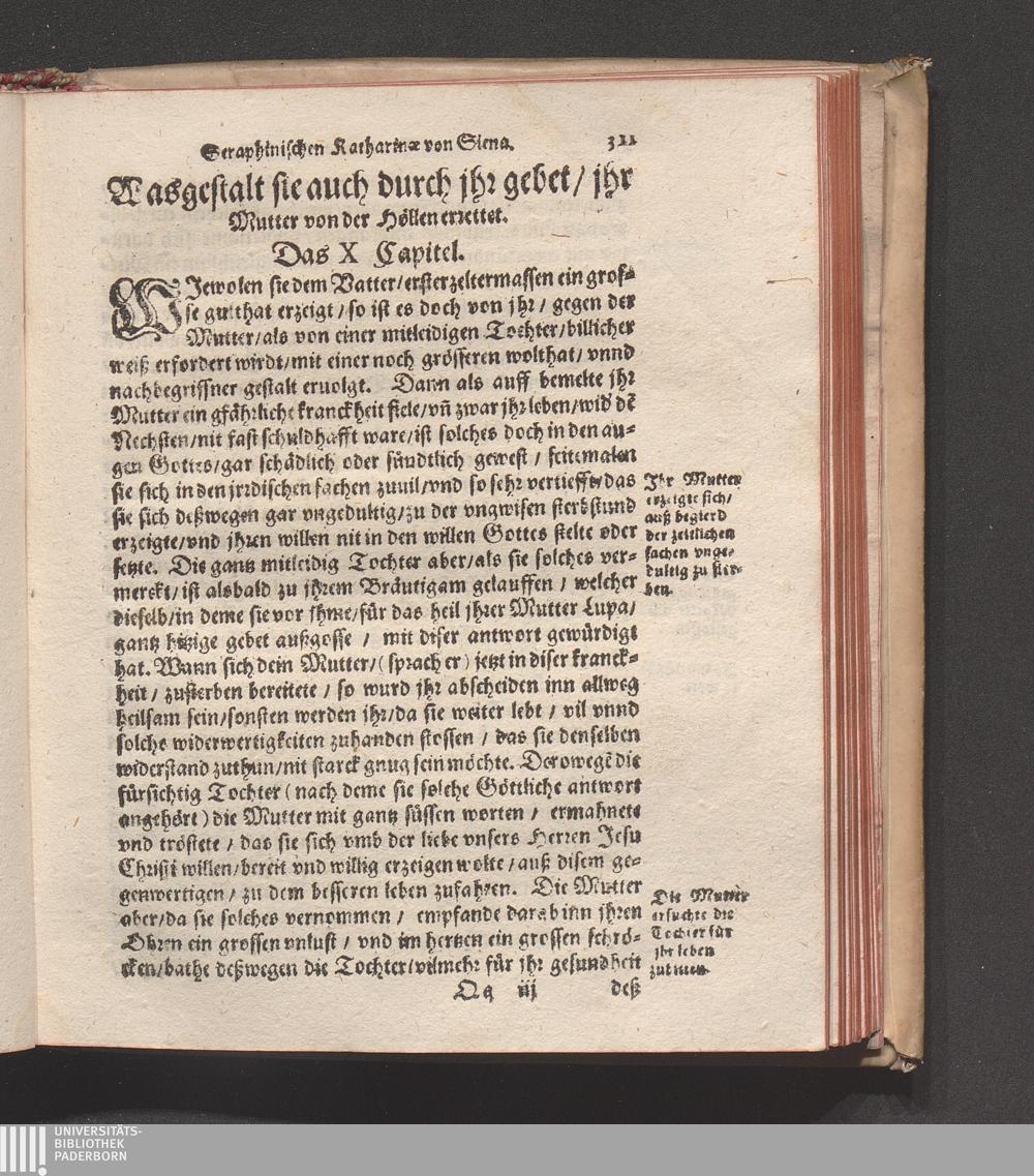 Höchst Wunderbarliches Leben/ vnd allerseligstes absterben/ sowol grosse Wunderwerck/ als auch gar herrliche/ fürtreffliche/ allerChristlichste/ von Him[m]el gefloßne Lehr/ der heiligen/ sonderbaren/ ausserwöhlten/ geliebten/ Seraphinischen vermählten Braut Jesv Christi/ Katharinæ von Siena/ der dritten Regel deß heiligen Dominici / Anfangs durch ihren Beichtvatter Beatum Raymundum, de Capua, gewesten Generalem Sacri Ordinis Prædicatorum, (deß auch die andere hieneben stehendte Authores bestettigt) inn Latein beschriben/ vnd durch F. Ambrosium Catharinum in die Welsch: An ietzo aber durch Hanßen Gaßner/ trewlich inn vnser Teutsche Sprach gebracht vnd verfertigt