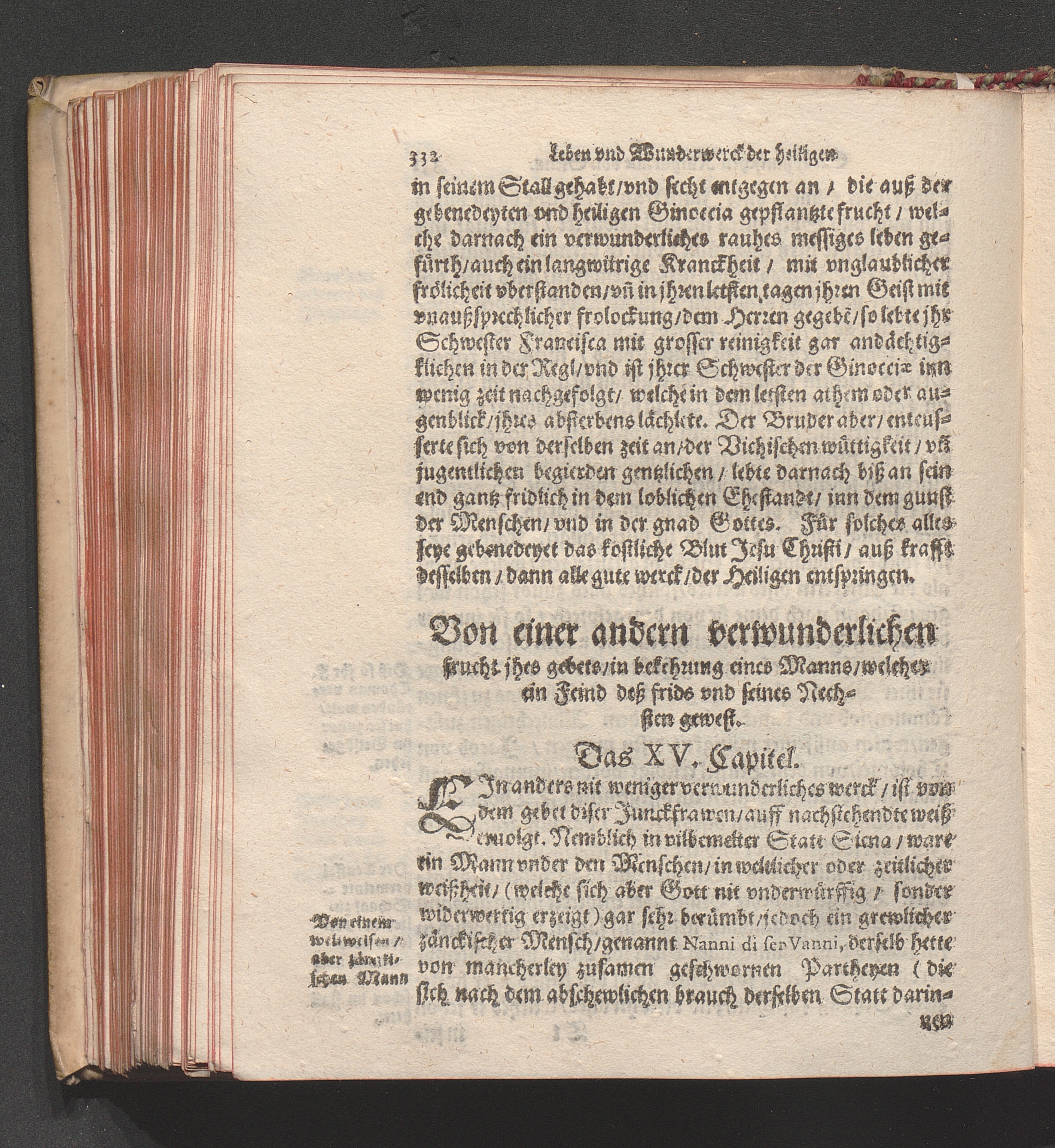 Höchst Wunderbarliches Leben/ vnd allerseligstes absterben/ sowol grosse Wunderwerck/ als auch gar herrliche/ fürtreffliche/ allerChristlichste/ von Him[m]el gefloßne Lehr/ der heiligen/ sonderbaren/ ausserwöhlten/ geliebten/ Seraphinischen vermählten Braut Jesv Christi/ Katharinæ von Siena/ der dritten Regel deß heiligen Dominici / Anfangs durch ihren Beichtvatter Beatum Raymundum, de Capua, gewesten Generalem Sacri Ordinis Prædicatorum, (deß auch die andere hieneben stehendte Authores bestettigt) inn Latein beschriben/ vnd durch F. Ambrosium Catharinum in die Welsch: An ietzo aber durch Hanßen Gaßner/ trewlich inn vnser Teutsche Sprach gebracht vnd verfertigt