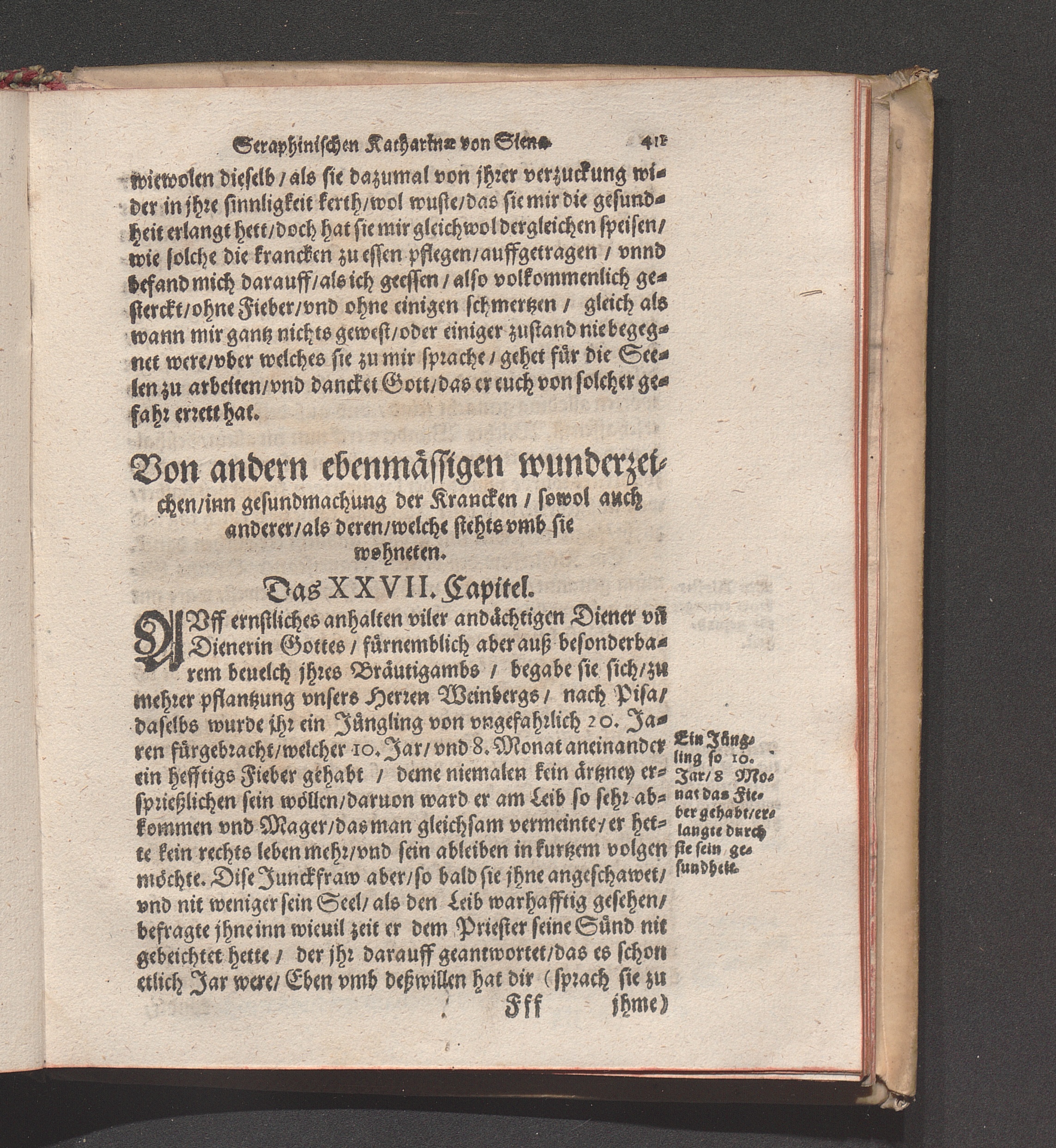 Höchst Wunderbarliches Leben/ vnd allerseligstes absterben/ sowol grosse Wunderwerck/ als auch gar herrliche/ fürtreffliche/ allerChristlichste/ von Him[m]el gefloßne Lehr/ der heiligen/ sonderbaren/ ausserwöhlten/ geliebten/ Seraphinischen vermählten Braut Jesv Christi/ Katharinæ von Siena/ der dritten Regel deß heiligen Dominici / Anfangs durch ihren Beichtvatter Beatum Raymundum, de Capua, gewesten Generalem Sacri Ordinis Prædicatorum, (deß auch die andere hieneben stehendte Authores bestettigt) inn Latein beschriben/ vnd durch F. Ambrosium Catharinum in die Welsch: An ietzo aber durch Hanßen Gaßner/ trewlich inn vnser Teutsche Sprach gebracht vnd verfertigt