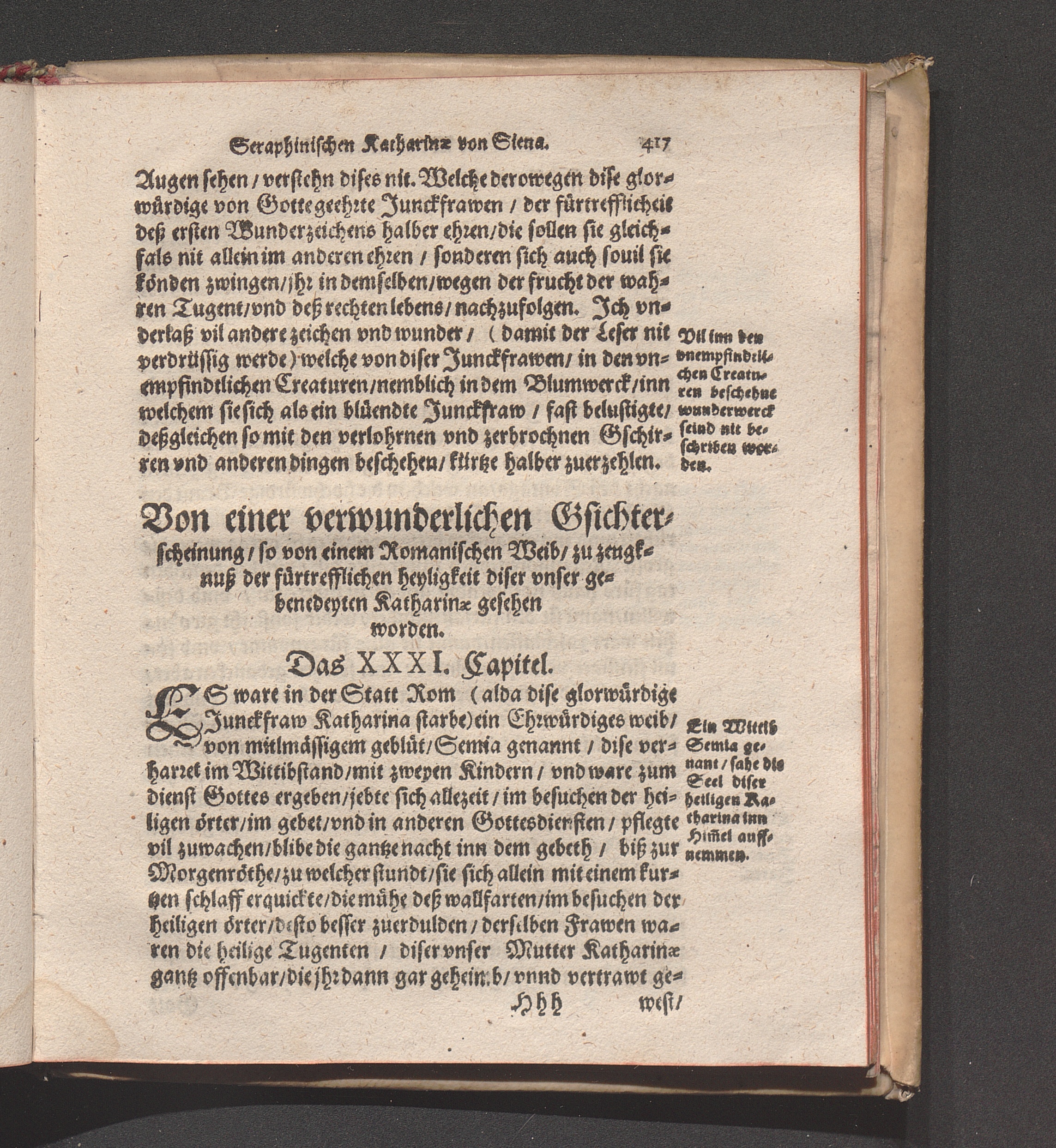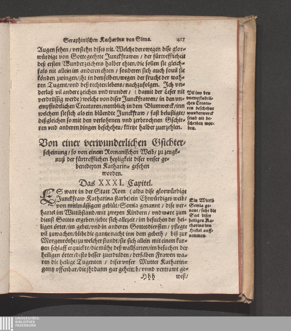 Höchst Wunderbarliches Leben/ vnd allerseligstes absterben/ sowol grosse Wunderwerck/ als auch gar herrliche/ fürtreffliche/ allerChristlichste/ von Him[m]el gefloßne Lehr/ der heiligen/ sonderbaren/ ausserwöhlten/ geliebten/ Seraphinischen vermählten Braut Jesv Christi/ Katharinæ von Siena/ der dritten Regel deß heiligen Dominici / Anfangs durch ihren Beichtvatter Beatum Raymundum, de Capua, gewesten Generalem Sacri Ordinis Prædicatorum, (deß auch die andere hieneben stehendte Authores bestettigt) inn Latein beschriben/ vnd durch F. Ambrosium Catharinum in die Welsch: An ietzo aber durch Hanßen Gaßner/ trewlich inn vnser Teutsche Sprach gebracht vnd verfertigt
