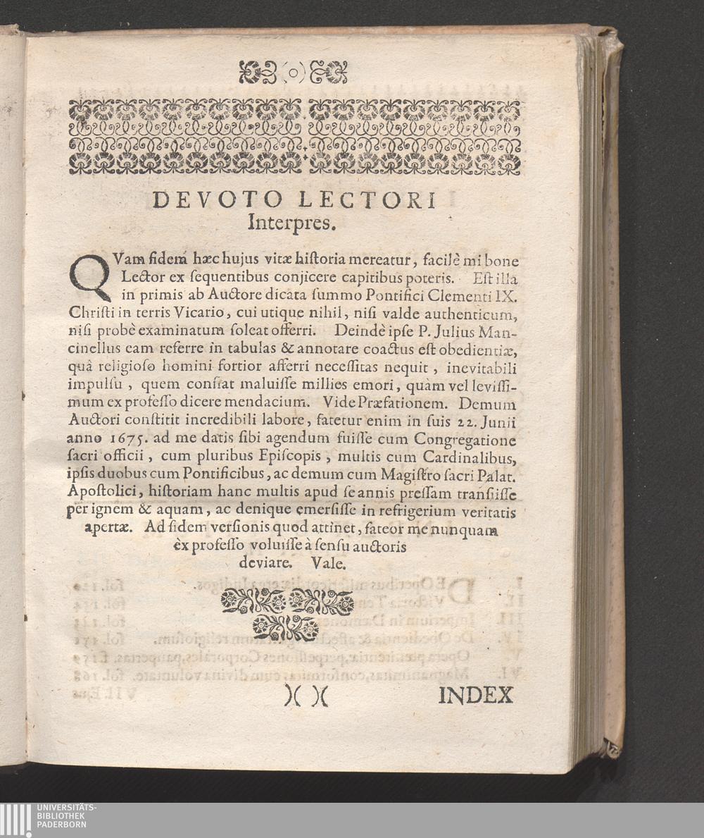 Devoto Lectori Interpres.