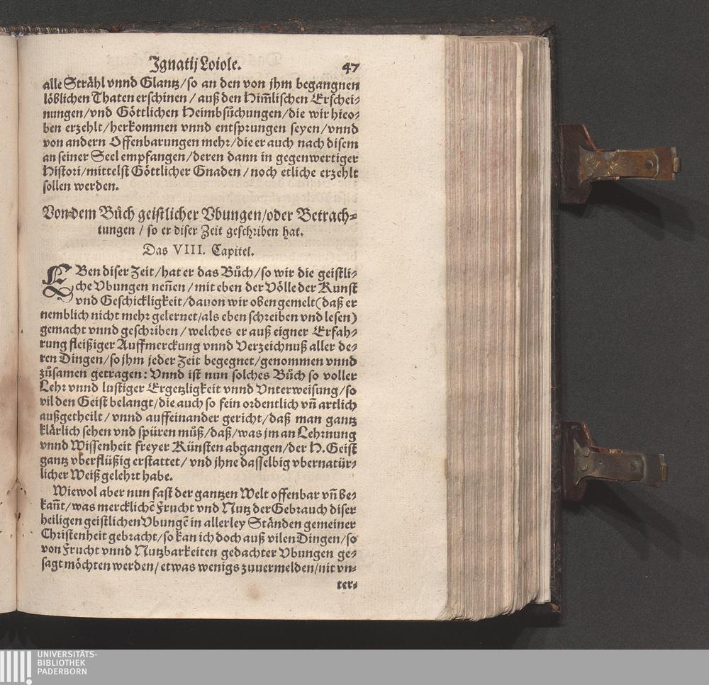 Historia Von dem Leben und Wandel Jgnatij Loiole/ Anfengers vnd Stiffters der Religion/ die Societet Iesv genannt / Erstlich von Petro Ribadenera in Spanischer Sprach beschriben/ Nachmals durch Johannem Jolitum inn die Welsche/ vnd ferner in vnser hochteutsche Sprach versetzet