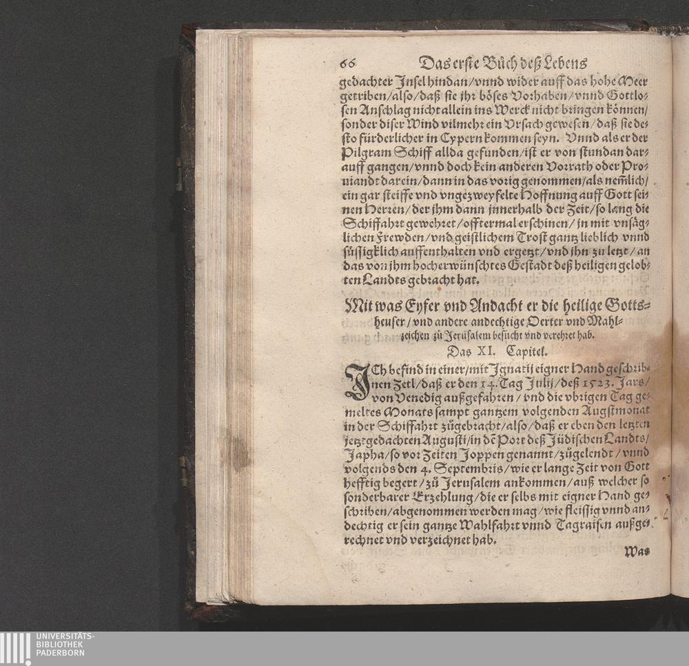 Historia Von dem Leben und Wandel Jgnatij Loiole/ Anfengers vnd Stiffters der Religion/ die Societet Iesv genannt / Erstlich von Petro Ribadenera in Spanischer Sprach beschriben/ Nachmals durch Johannem Jolitum inn die Welsche/ vnd ferner in vnser hochteutsche Sprach versetzet