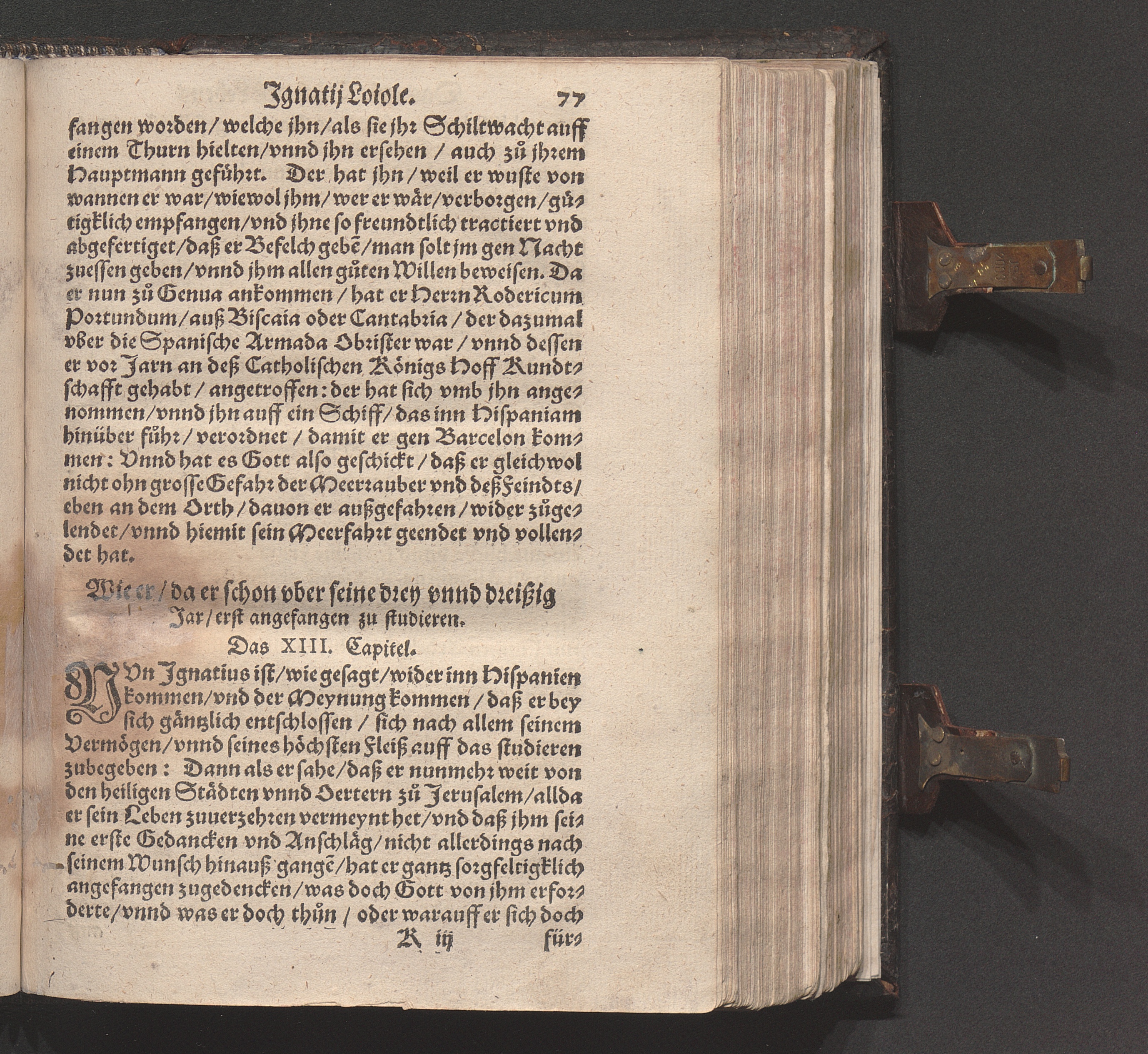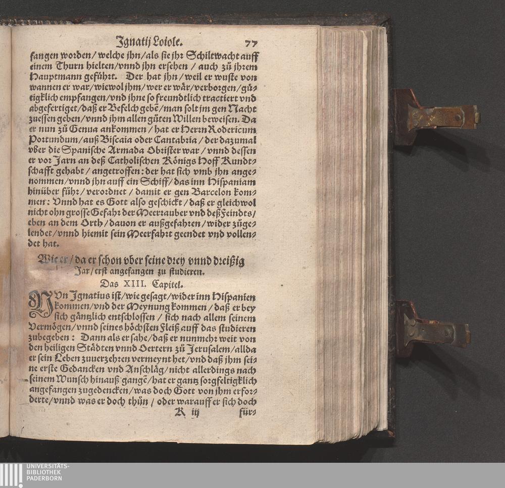 Historia Von dem Leben und Wandel Jgnatij Loiole/ Anfengers vnd Stiffters der Religion/ die Societet Iesv genannt / Erstlich von Petro Ribadenera in Spanischer Sprach beschriben/ Nachmals durch Johannem Jolitum inn die Welsche/ vnd ferner in vnser hochteutsche Sprach versetzet