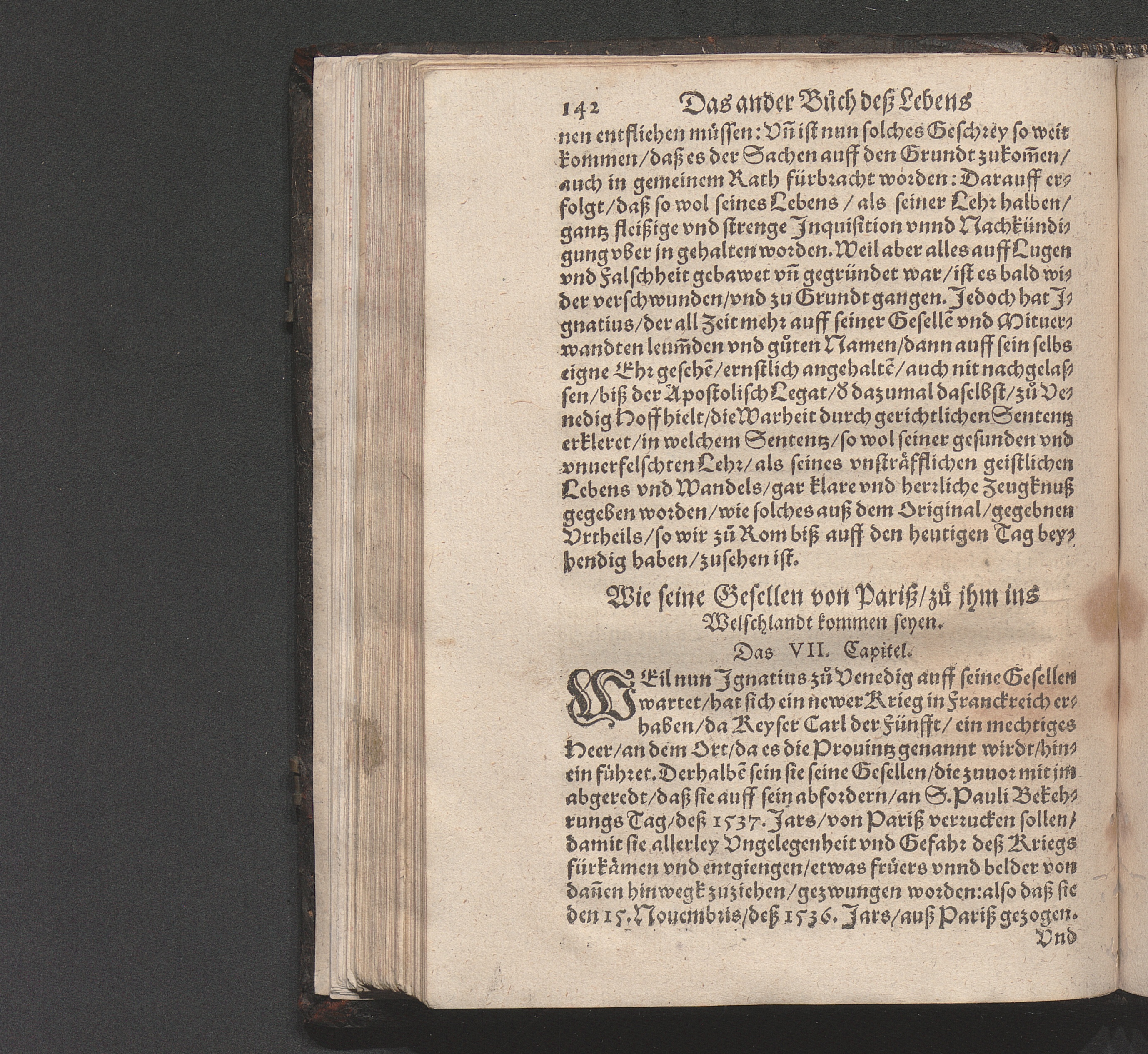 Historia Von dem Leben und Wandel Jgnatij Loiole/ Anfengers vnd Stiffters der Religion/ die Societet Iesv genannt / Erstlich von Petro Ribadenera in Spanischer Sprach beschriben/ Nachmals durch Johannem Jolitum inn die Welsche/ vnd ferner in vnser hochteutsche Sprach versetzet