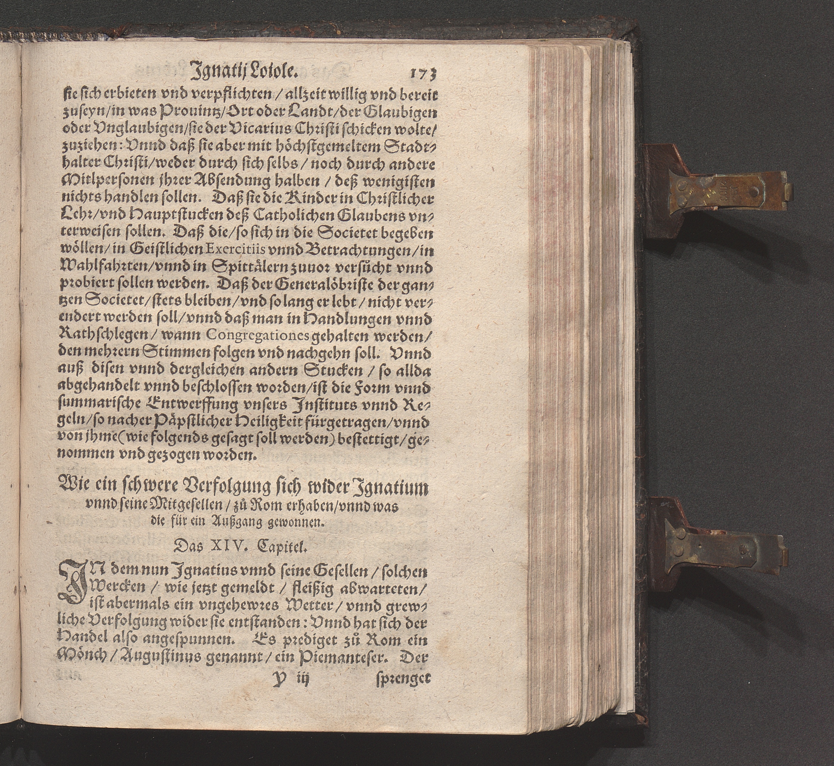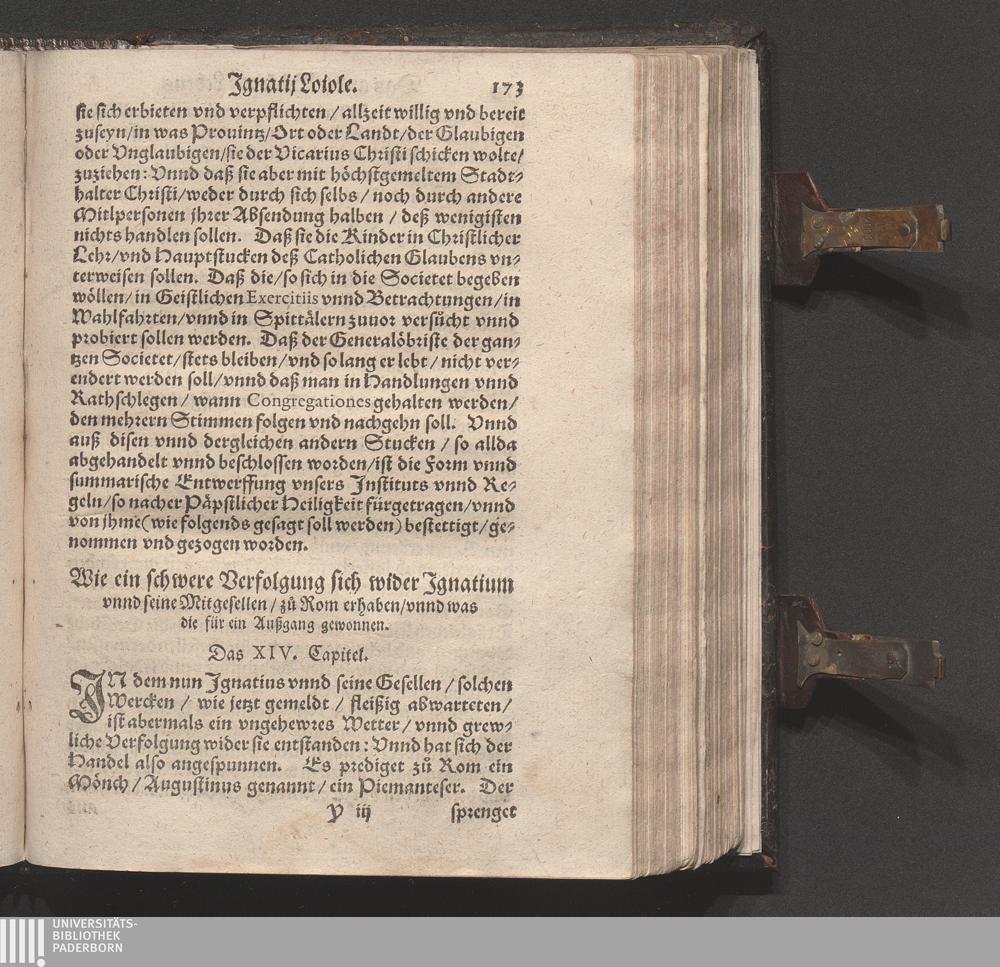 Historia Von dem Leben und Wandel Jgnatij Loiole/ Anfengers vnd Stiffters der Religion/ die Societet Iesv genannt / Erstlich von Petro Ribadenera in Spanischer Sprach beschriben/ Nachmals durch Johannem Jolitum inn die Welsche/ vnd ferner in vnser hochteutsche Sprach versetzet