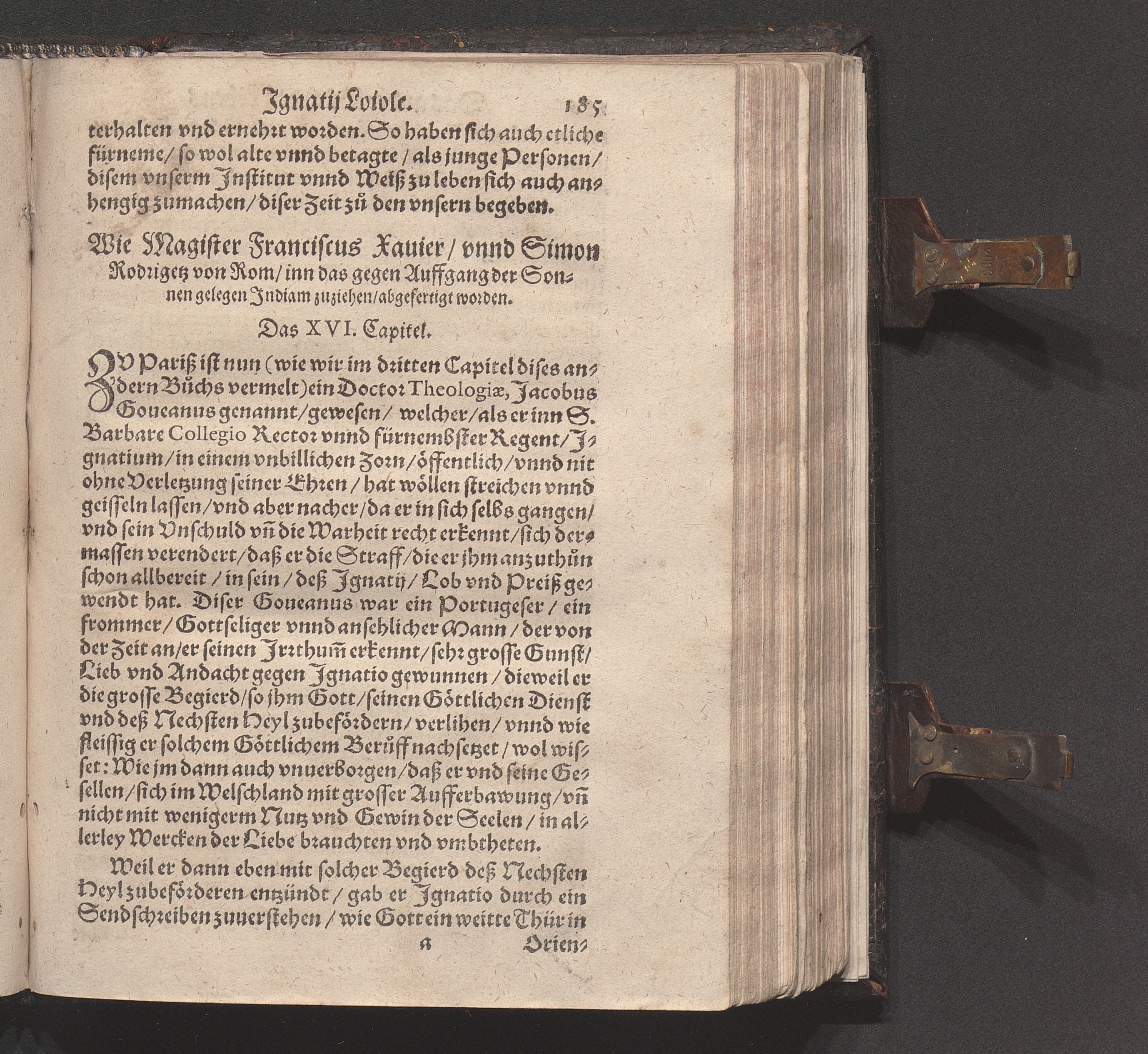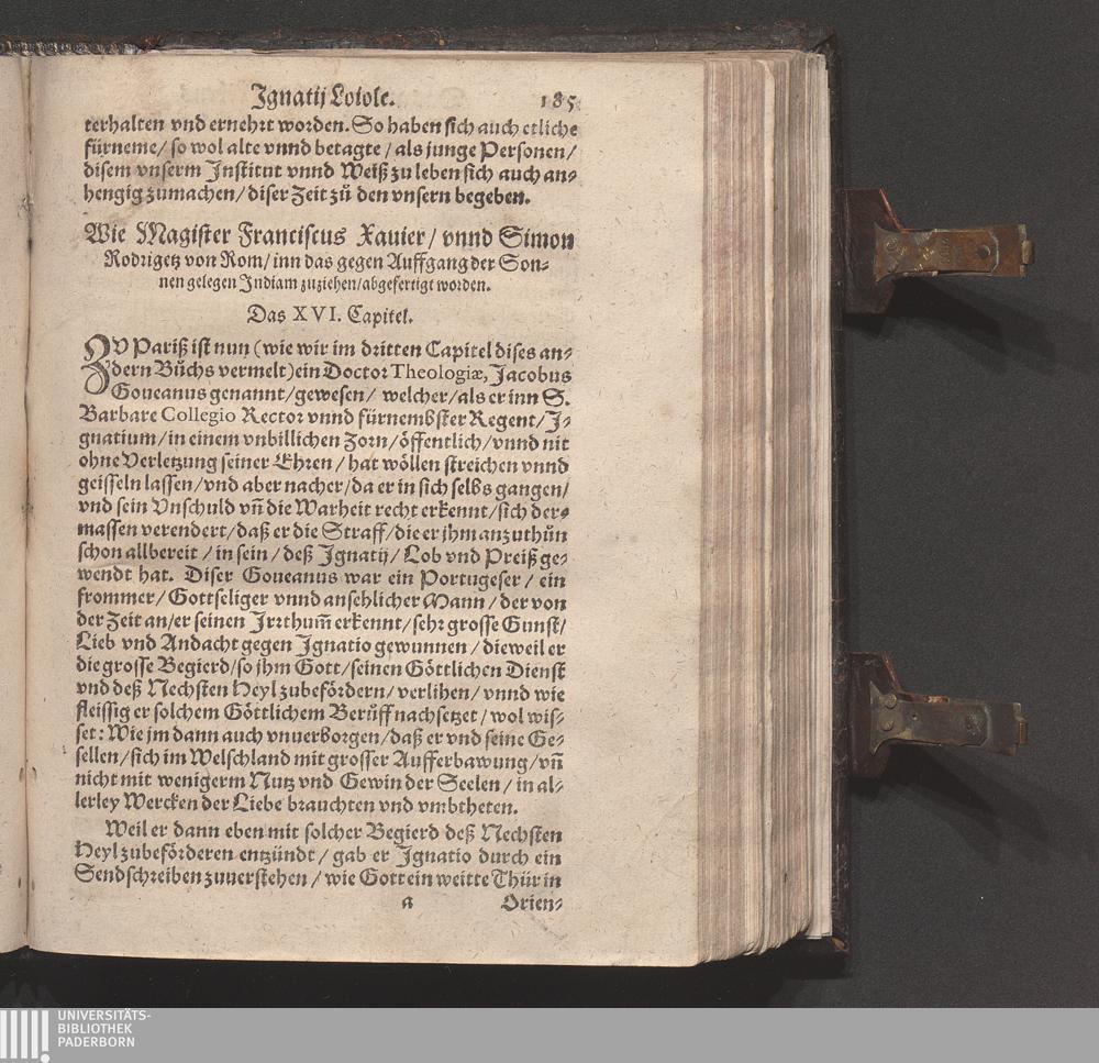 Historia Von dem Leben und Wandel Jgnatij Loiole/ Anfengers vnd Stiffters der Religion/ die Societet Iesv genannt / Erstlich von Petro Ribadenera in Spanischer Sprach beschriben/ Nachmals durch Johannem Jolitum inn die Welsche/ vnd ferner in vnser hochteutsche Sprach versetzet